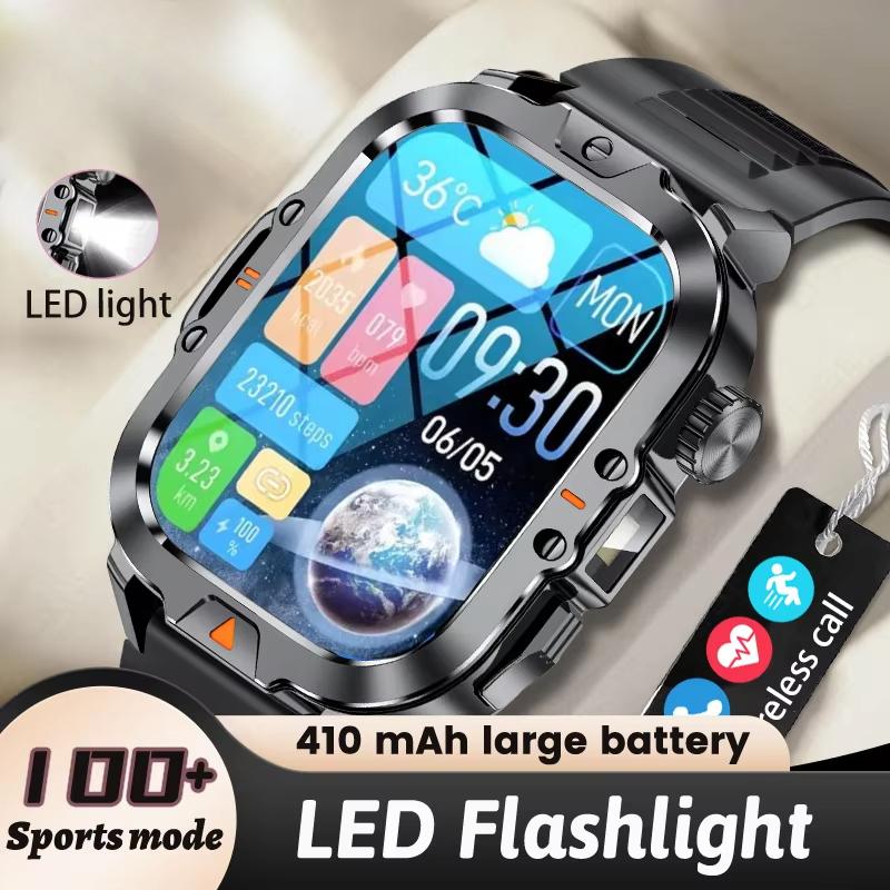Новые мужские смарт-часы 2025 года с 2,01-дюймовым HD-экраном, фонариком, для занятий спортом на открытом воздухе, водонепроницаемые IP68, с монитором здоровья, для звонков
