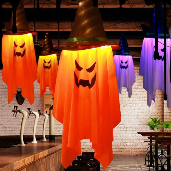 Украсьте свой Хэллоуинский декор светящимся подвесным призраком. Каждая шляпа-привидение с принтами грима с обеих сторон оснащена удобной кнопкой для легкой активации, освещая ваш сад жутким светом, чтобы приветствовать ваших соседей.. Простой в установке, этот кулон в виде привидения на Хэллоуин добавляет милый штрих к вашим украшениям. Подвесьте их во дворе, на патио или на деревьях для создания парящего эффекта ночью, создавая таинственную атмосферу..