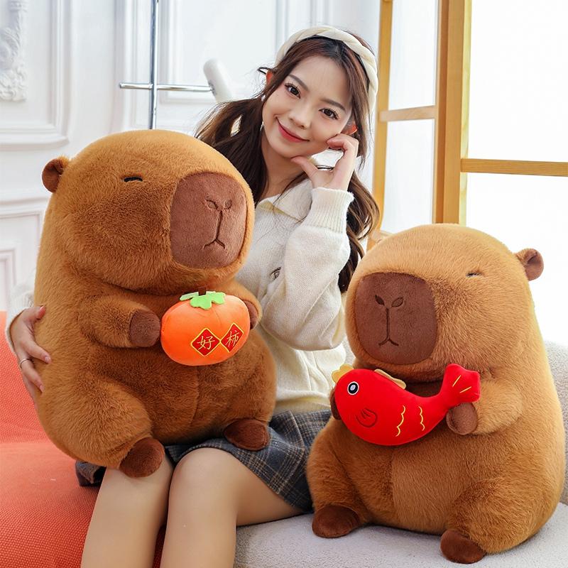 Новая 28~50см Коричневая Хурма Капибара Кукла Плюшевая Игрушка Мягкая Мультяшная Животное Держащая Плюшевая Игрушка Успокаивающая Подарок на День Рождения для Девочек
