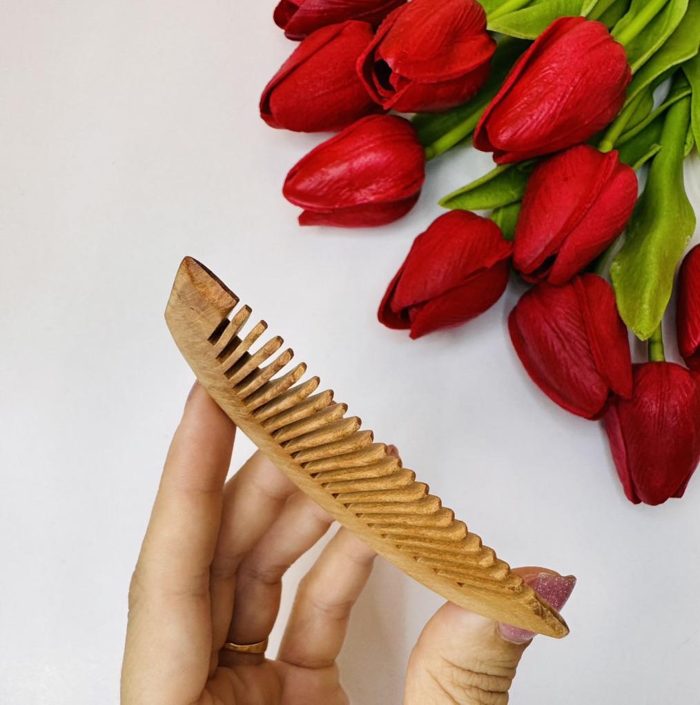 Деревянный гребень Заказала себе для фото и просто как элемент декора. Люблю такие вещи 😌 Качество хорошее. Густые волосы не осилит.