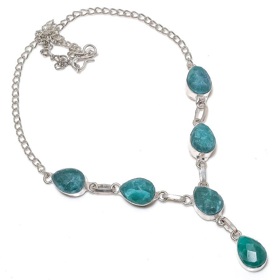 Натуральный Скота Изумруд Драгоценный камень 925 Стерлинговое серебро Ювелирное ожерелье 18" t7g37