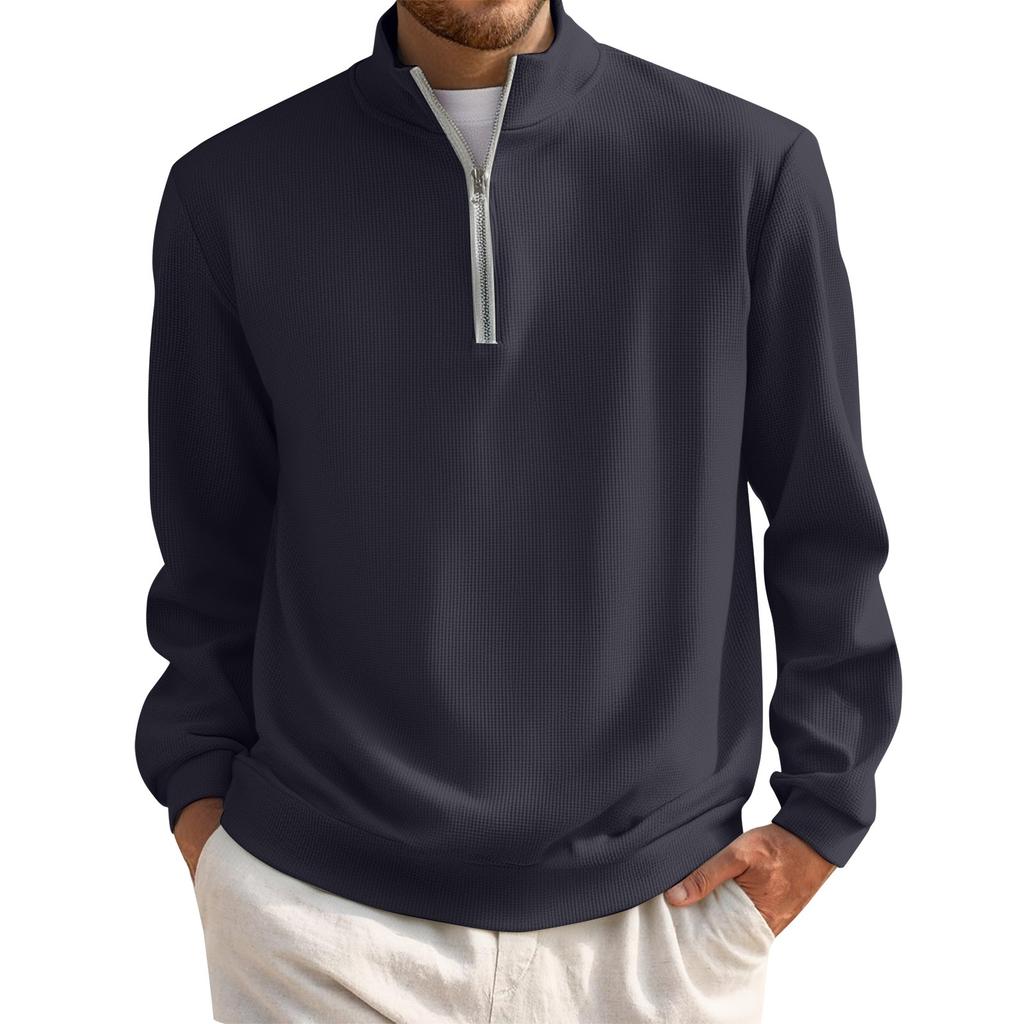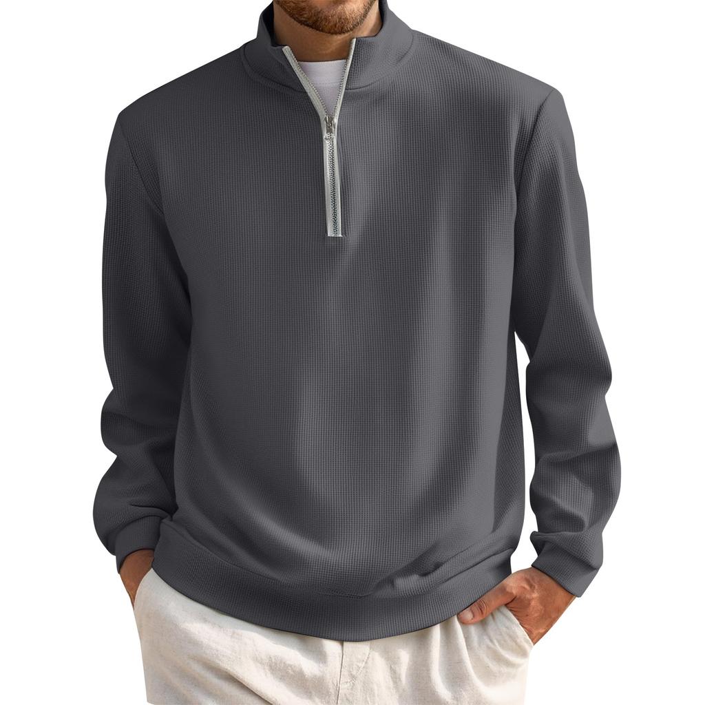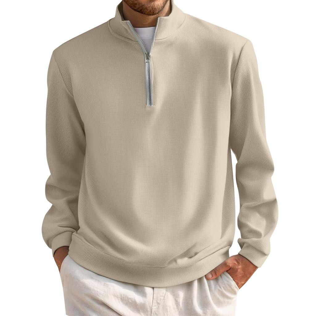 Мужской короткий пуловер на молнии с высоким воротником и длинными рукавами