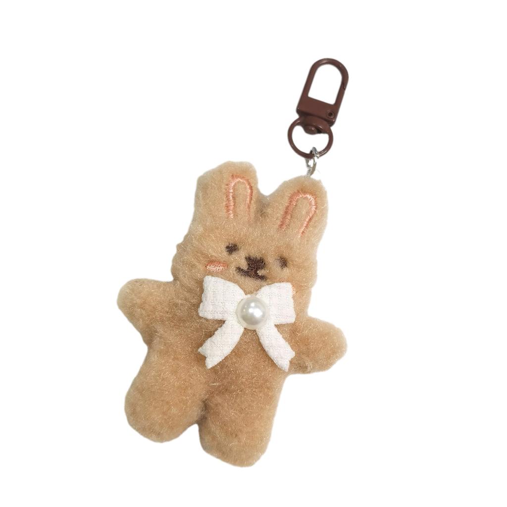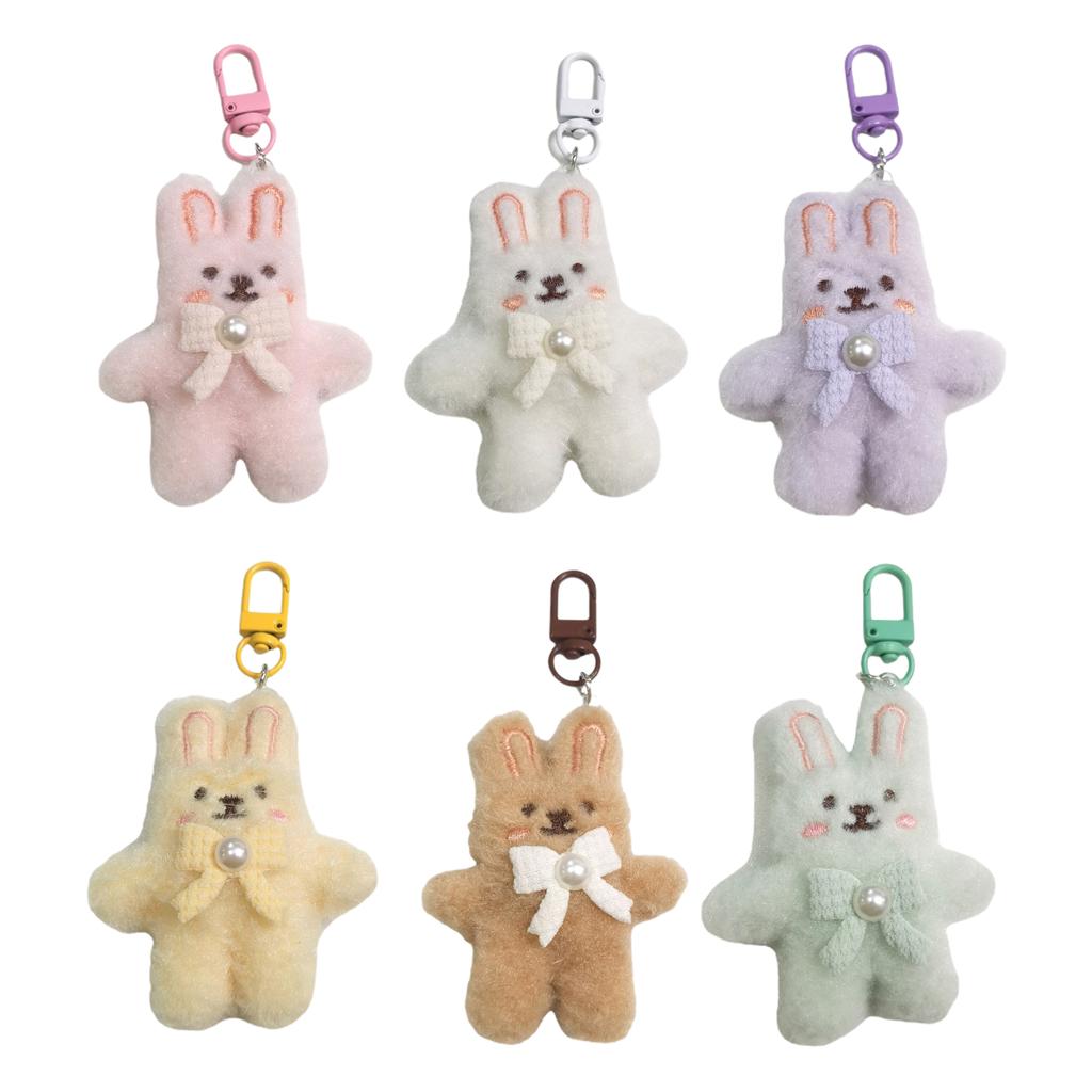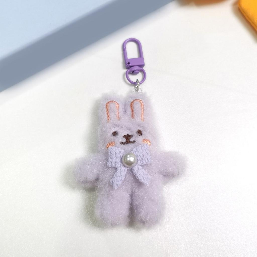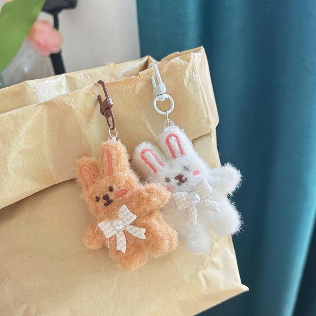 Этот брелок в виде кролика имеет милый плюшевый дизайн, дополненный галстуком-бабочкой из жемчуга, демонстрируя сладкий и девичий стиль, что делает его идеальным подарком для студенток и девушек.