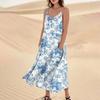 Женское модное повседневное длинное пляжное платье без рукавов с карманом и цветочным принтом