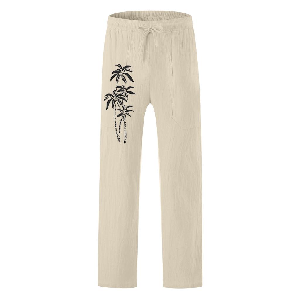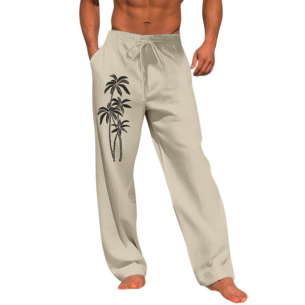 Мужские повседневные свободные и удобные повседневные брюки, хлопковые льняные брюки с принтом на шнуровке