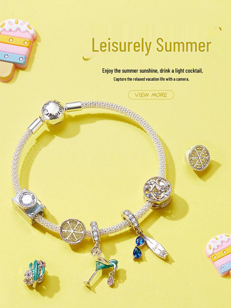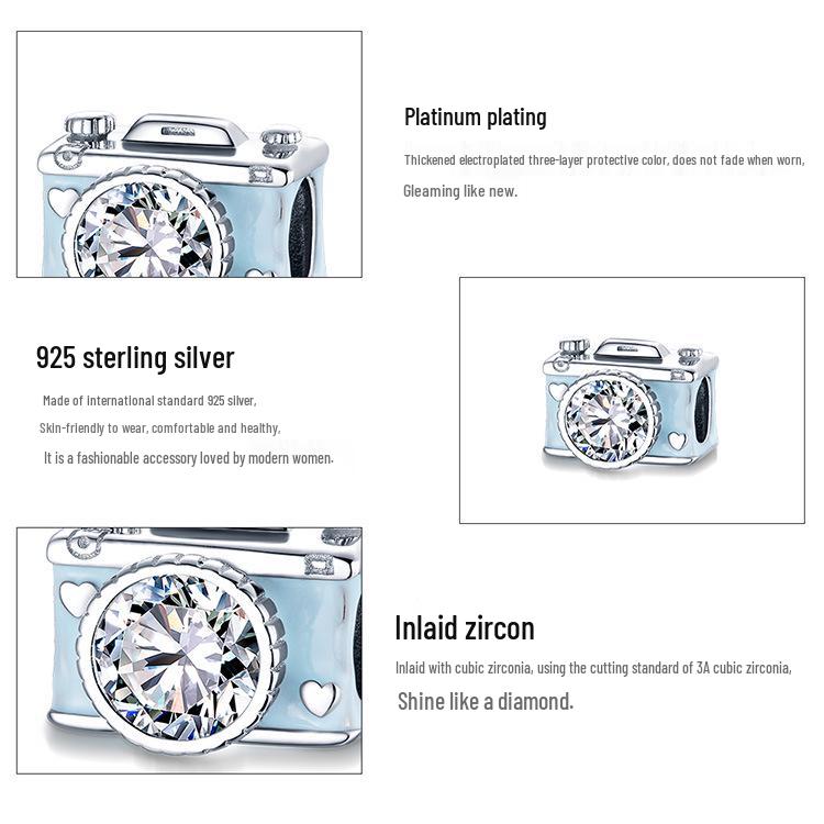 Avle S925 Стерлинговое серебро Блестящие бусины-камеры DIY Браслет Ювелирные аксессуары