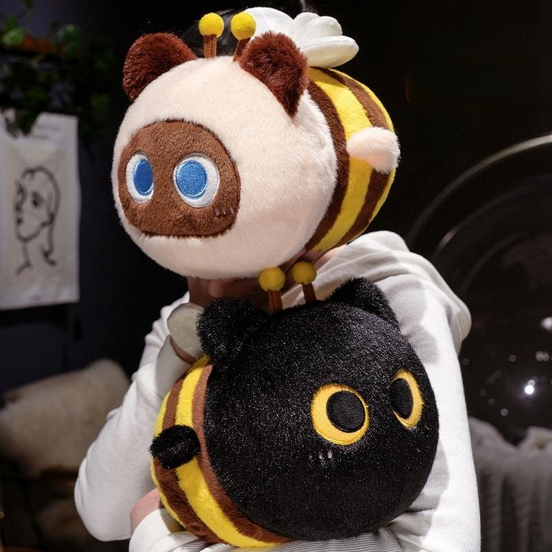 Забавная плюшевая игрушка кошка-пчела, мягкая набивная кукла котенок-пчела, детская подушка для сна и обнимания, кавайный декор комнаты, подарок на день рождения, Рождество