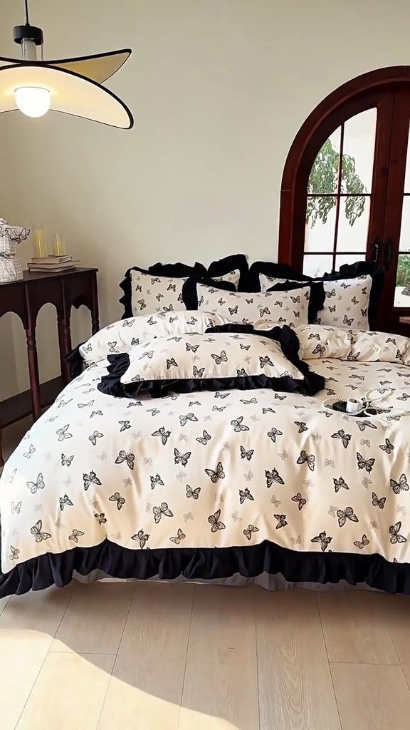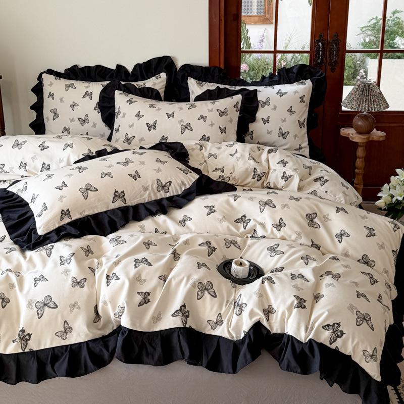 Постельное белье Набор из четырех предметов Принтованный Приятный к коже Водостойкий Простыни Пододеяльник Наволочки Комплект