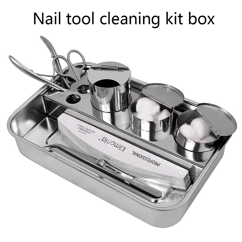 Набор для чистки и хранения инструментов для ногтей, ящик из нержавеющей стали, настольный лоток для хранения, лоток для дезинфекции ногтей, профессиональные принадлежности для маникюрного салона