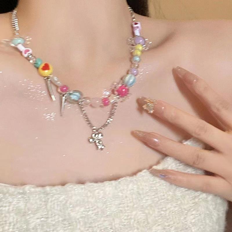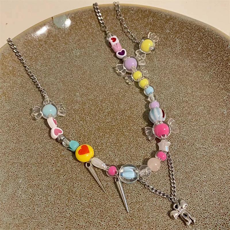 Красочные звезды Y2K Love ожерелье Милые крутые женские бусины подвеска ожерелье ключица цепочка чокер