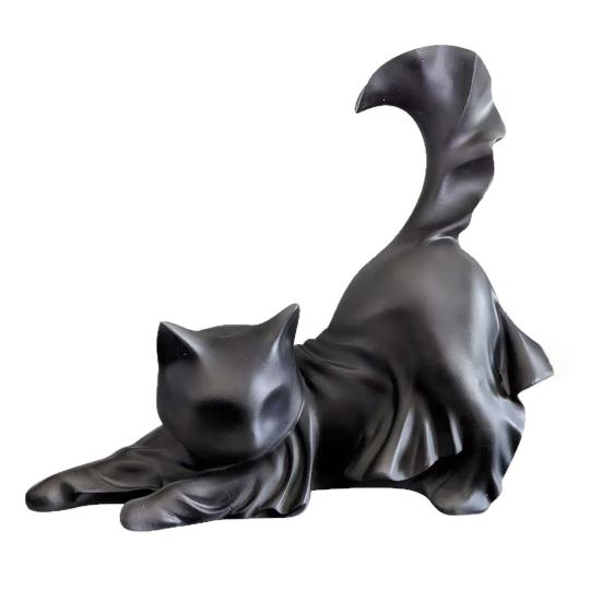 Сложная 3D-детализация скульптуры: Кажется, что кошка закутана в черный плащ призрака, создающий трехмерную текстуру, одновременно жуткую и изысканную.. Это произведение искусства наверняка вызовет удивление и крики на Хэллоуинских вечеринках или тематических мероприятиях.