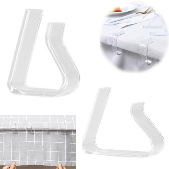 Просто вставьте клипсу на край стола для устойчивого крепления.. Изготовленные из прочных материалов, эти клипсы прозрачные и прочные. Их изящный дизайн позволяет им органично сочетаться с любым рисунком скатерти.
