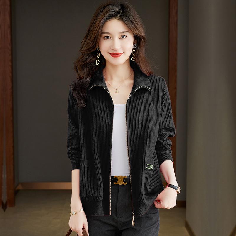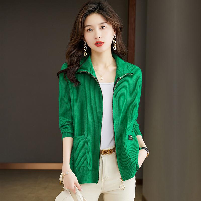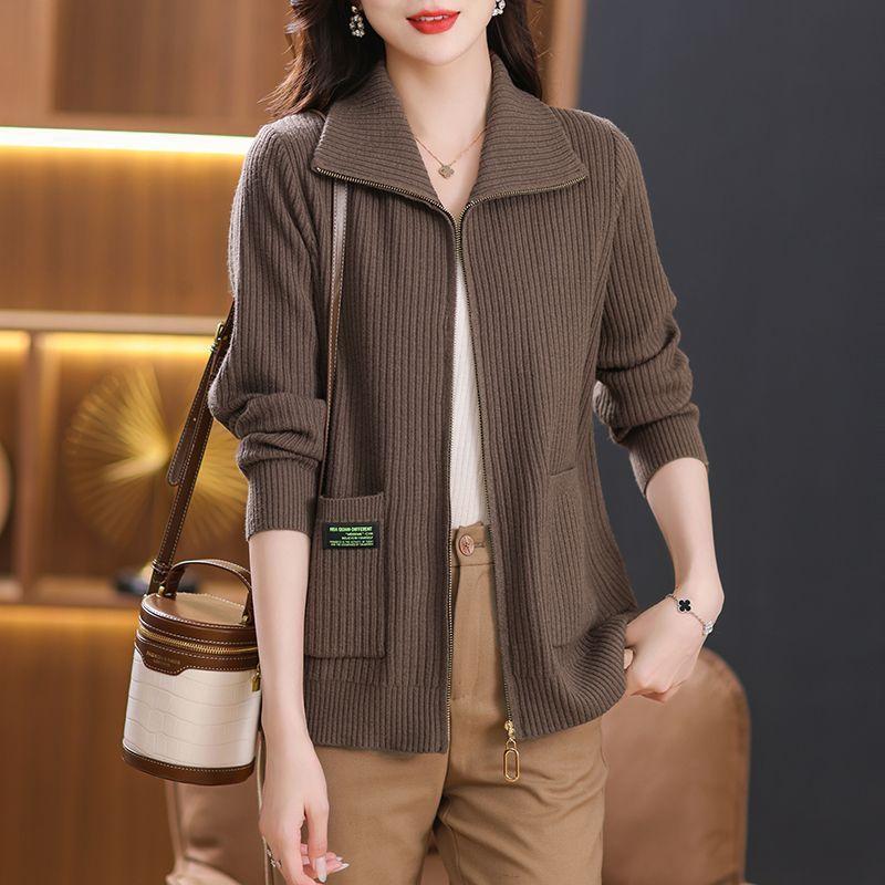 Женские кардиганы, свитера, верхняя одежда, весенне-осенний трикотаж, лацканы, карманы на молнии