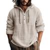 Мужская летняя однотонная куртка с карманами из хлопка и льна с длинным рукавом, на пуговицах, с капюшоном