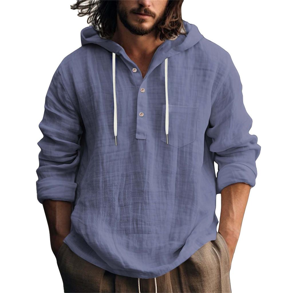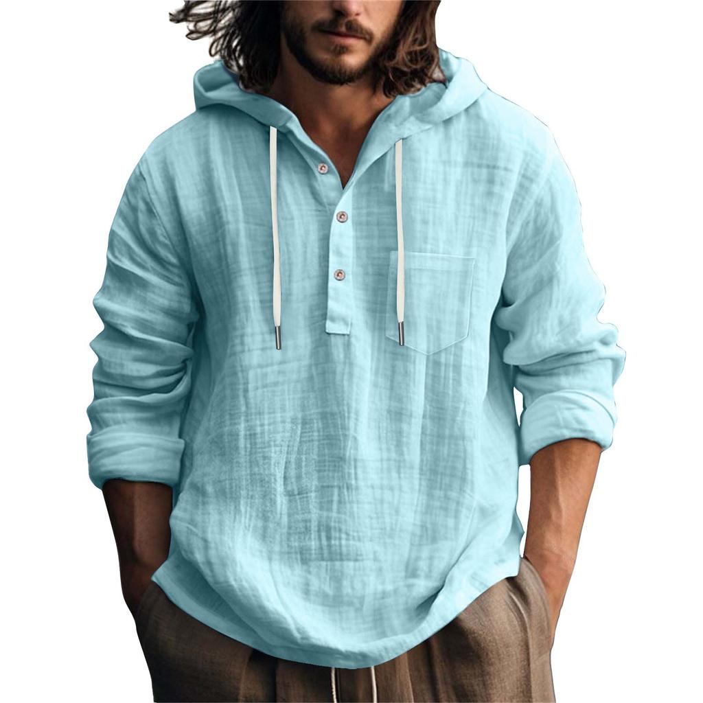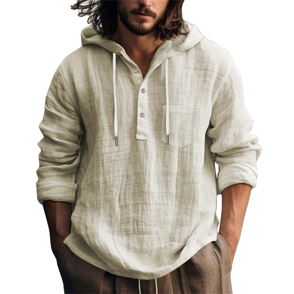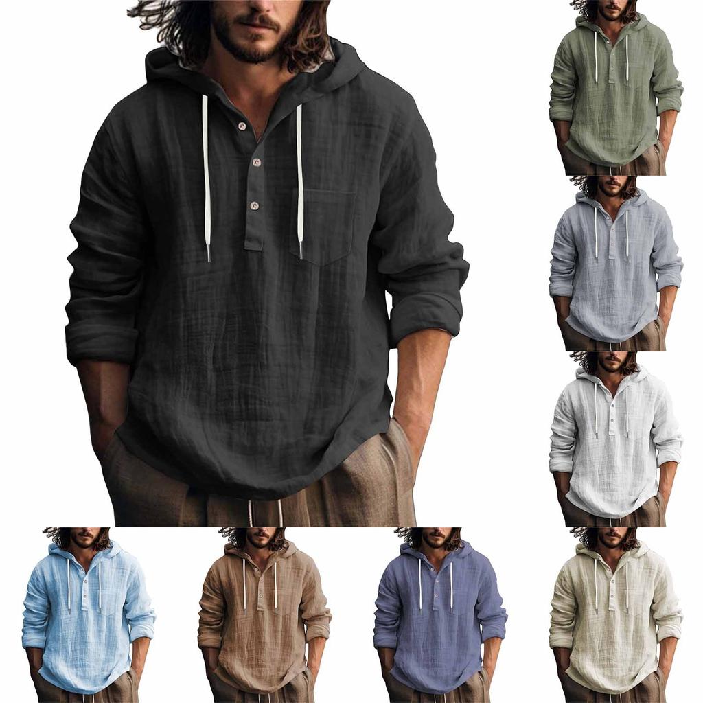 Мужская летняя однотонная хлопковая льняная куртка с длинным рукавом и капюшоном на пуговицах