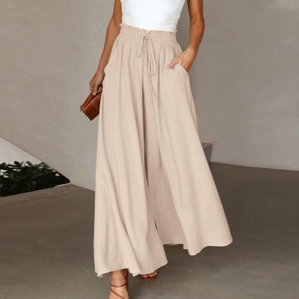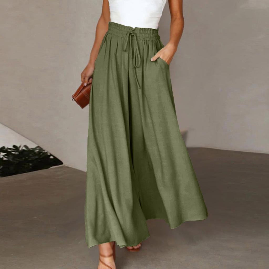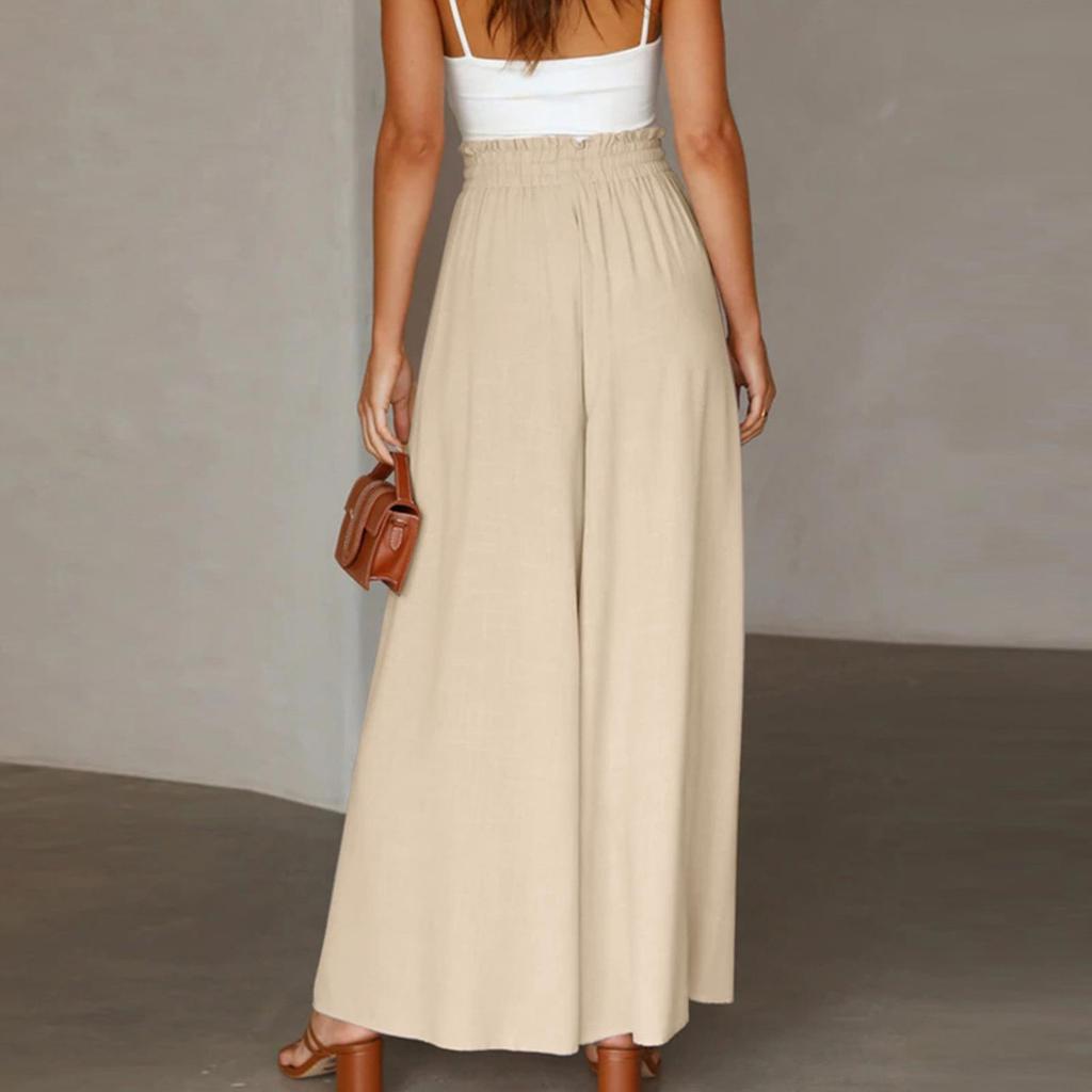 Женские однотонные брюки с эластичным поясом, широкие брюки с высокой талией, длинные брюки-кюлоты