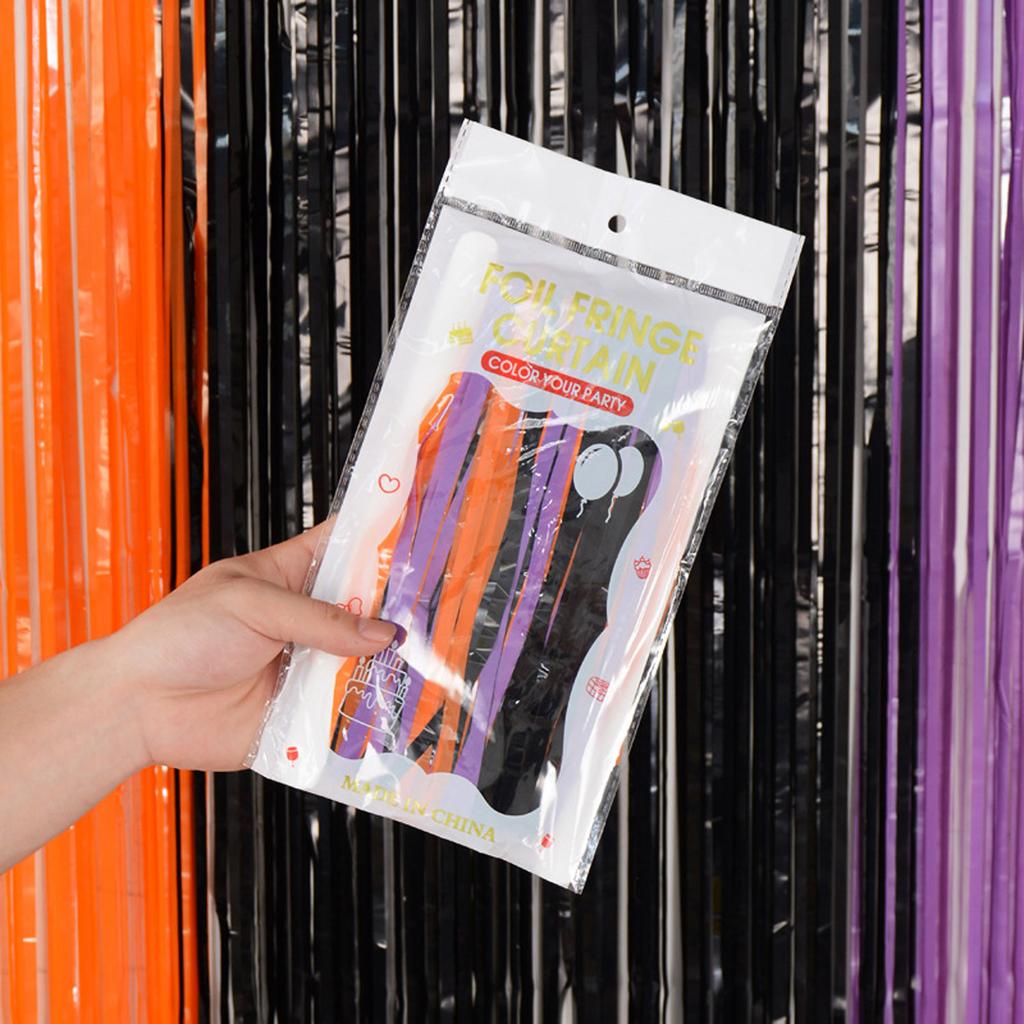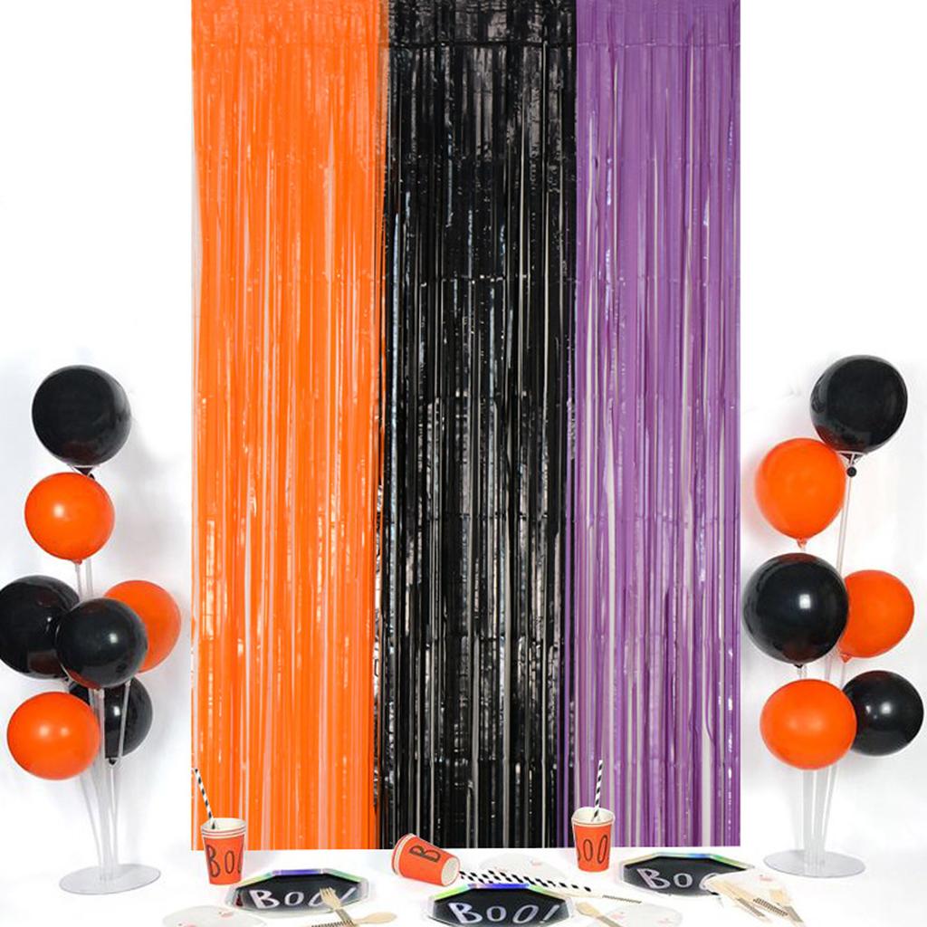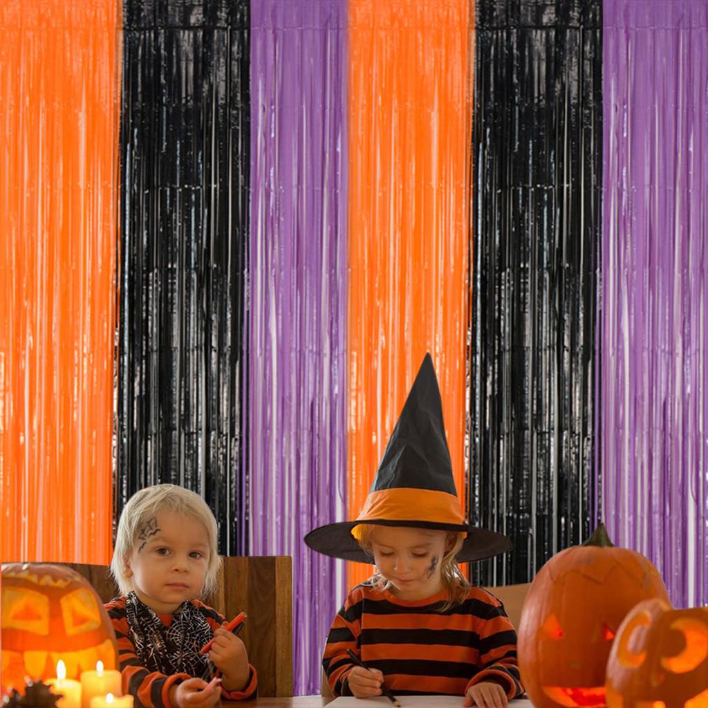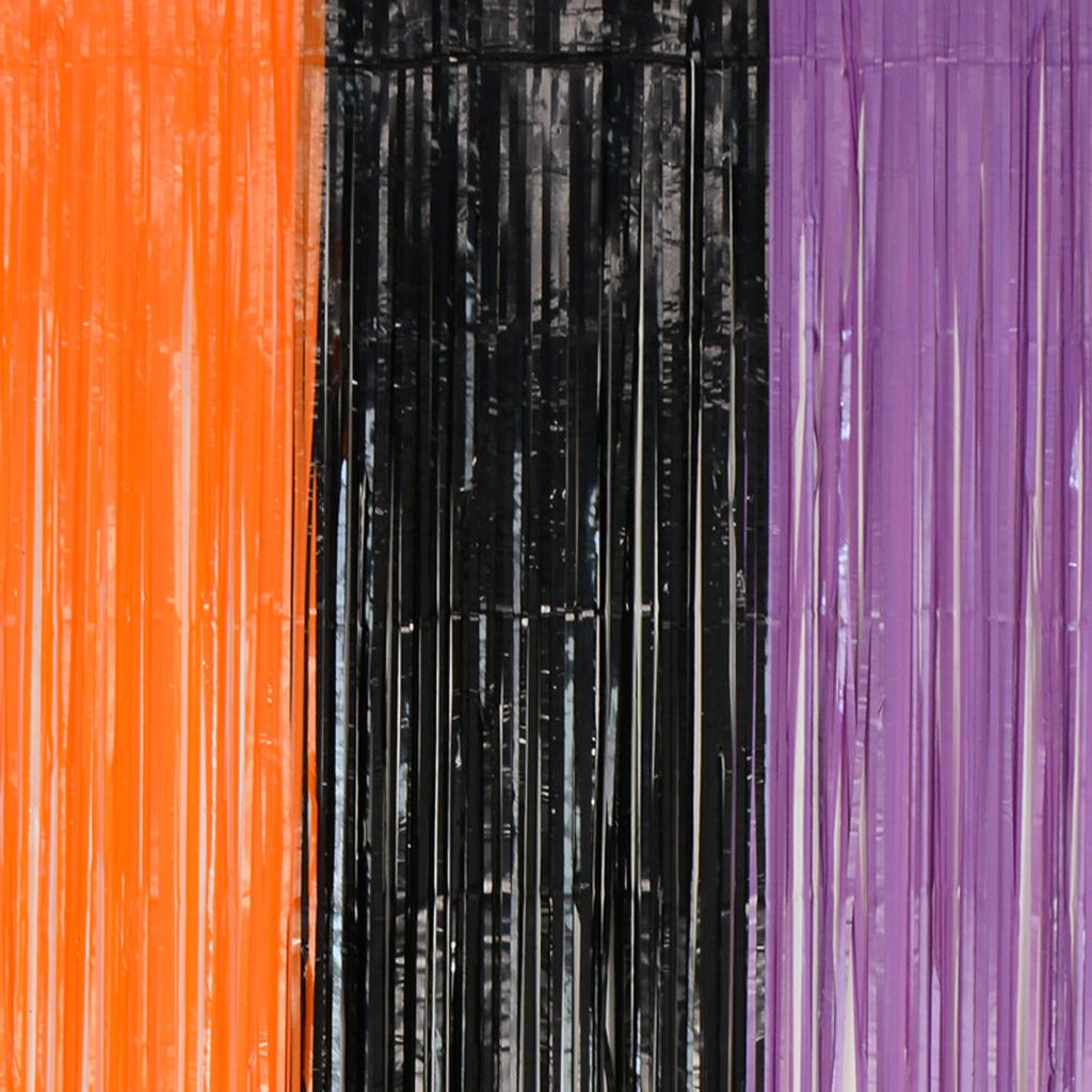 Трехцветный черный и оранжевый с фиолетовой занавеской из фольги с бахромой, дверные шторы размером 3,28 х 6,56 футов, фон для фотобудки для украшения вечеринки на Хэллоуин