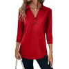 Женская модная повседневная рубашка с лацканами и рукавом 3/4, однотонная, женские топы на пуговицах с V-образным вырезом