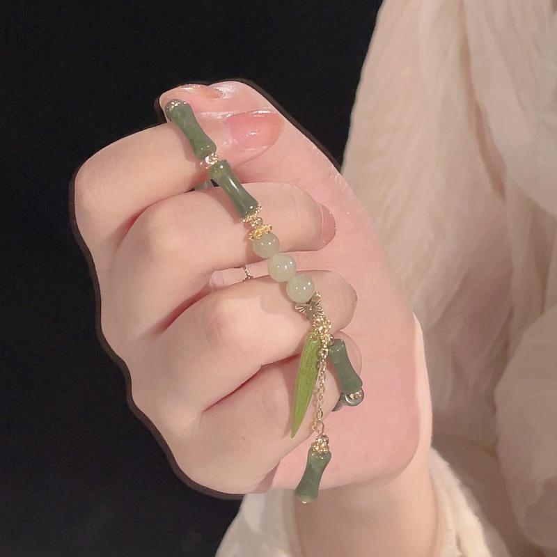 Женский браслет из зеленого бамбука в китайском стиле в стиле ретро, модный простой браслет с листьями из сплава, ювелирное изделие, подарок