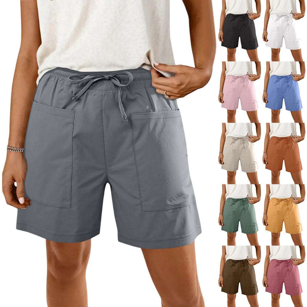 Женские модные однотонные повседневные шорты с карманами и завязками на ремне — купить товар онлайн с бесплатной доставкой по всему миру!