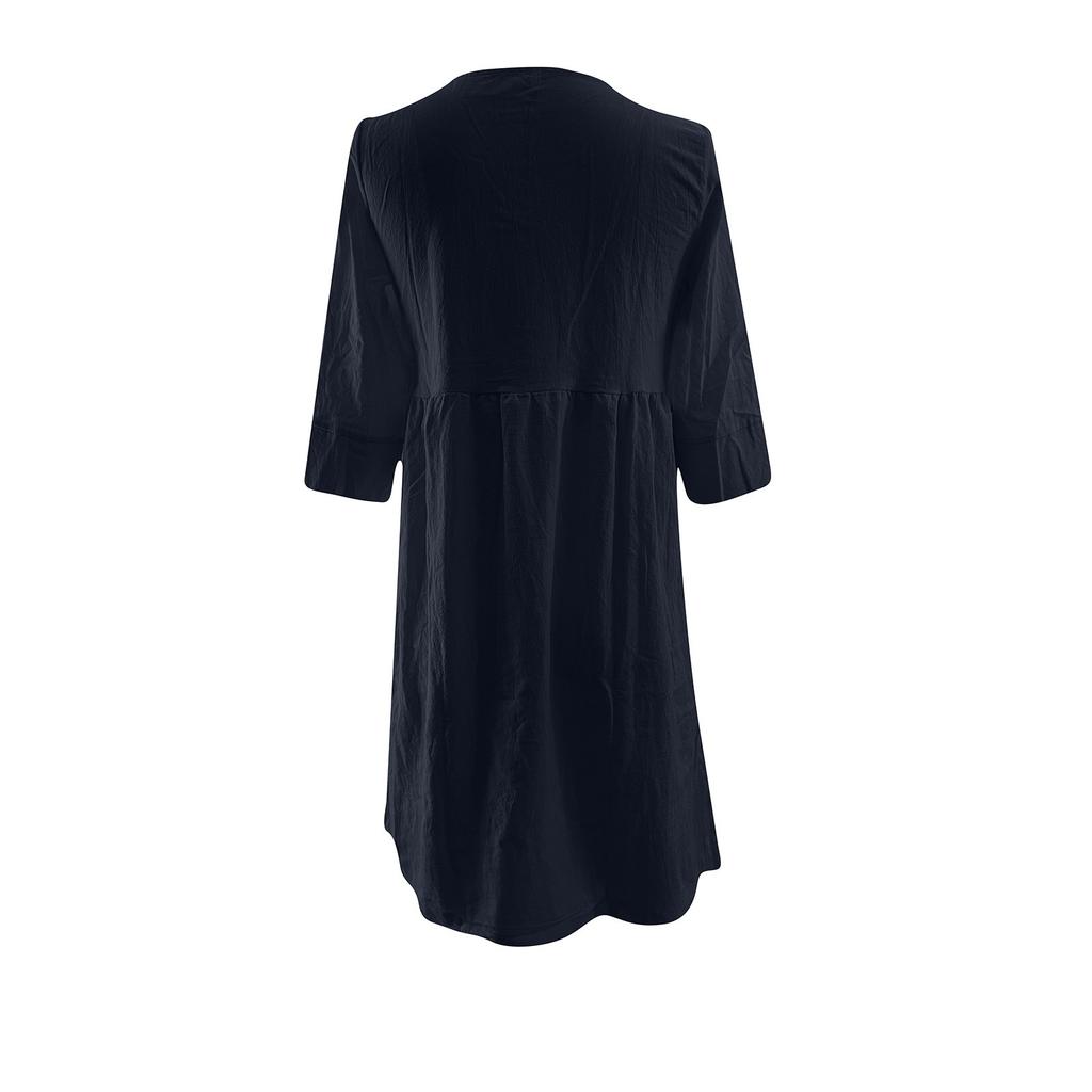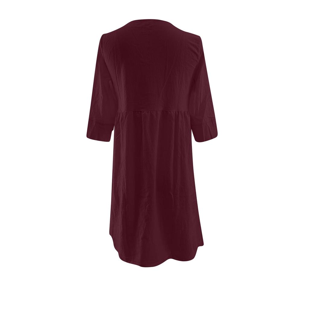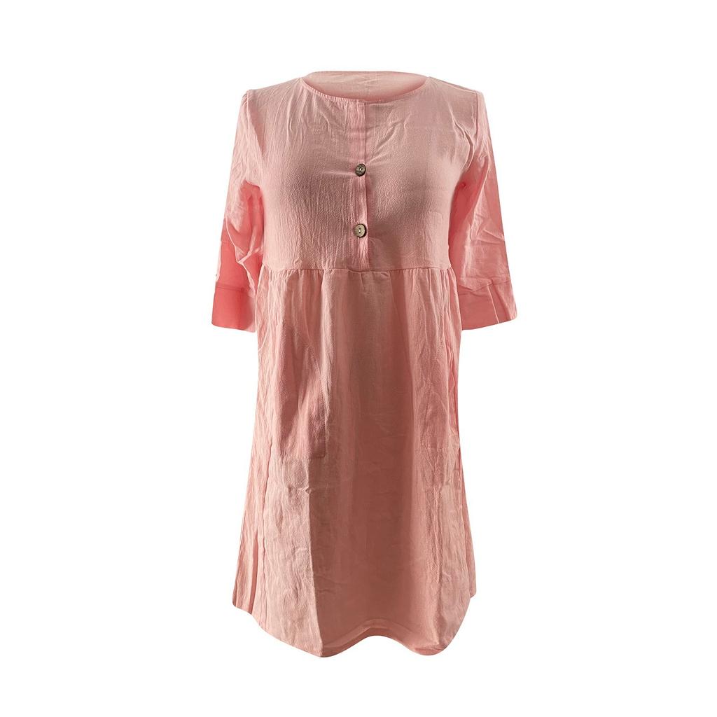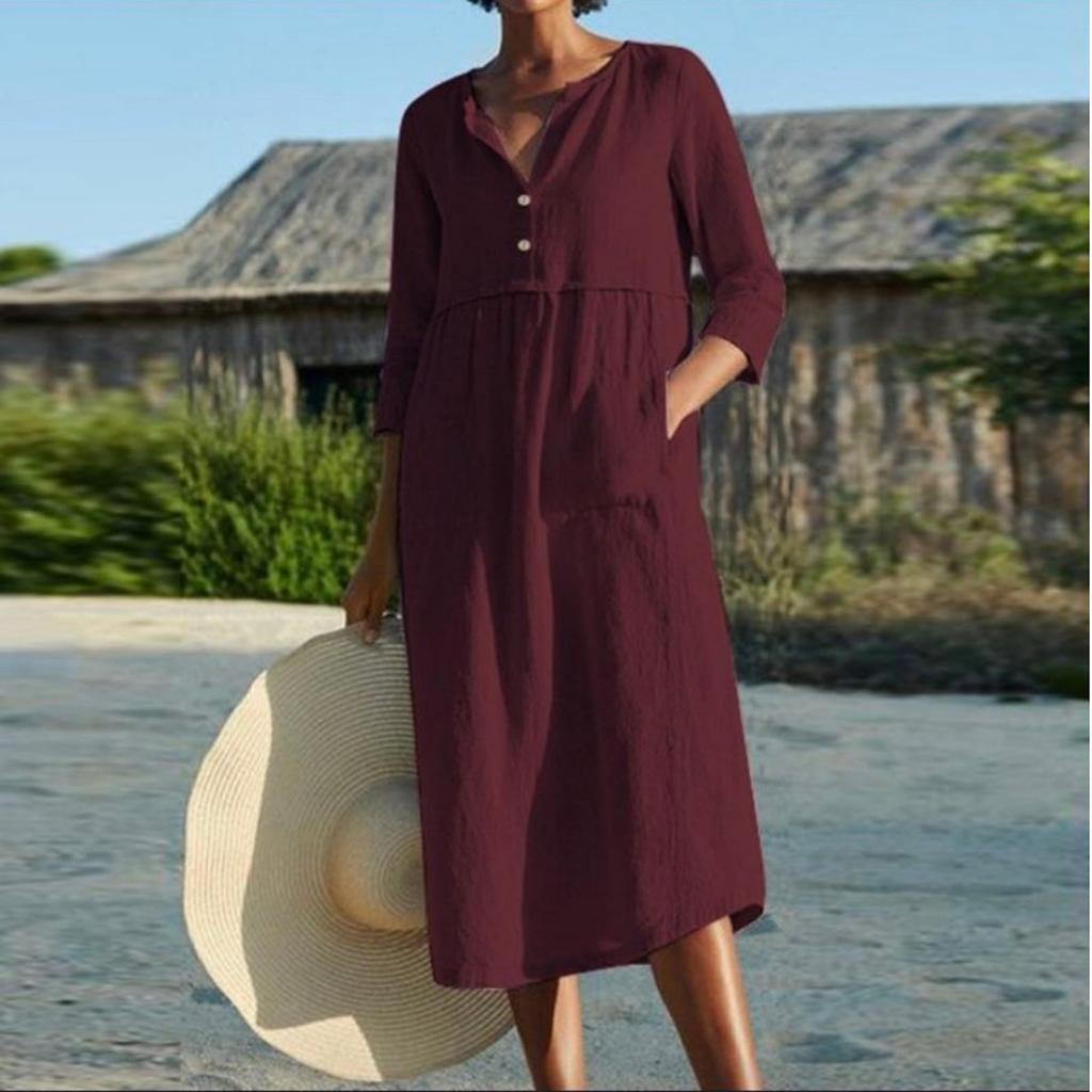 Женское модное повседневное платье с карманом на пуговицах из хлопка и льна с рукавами, однотонное платье