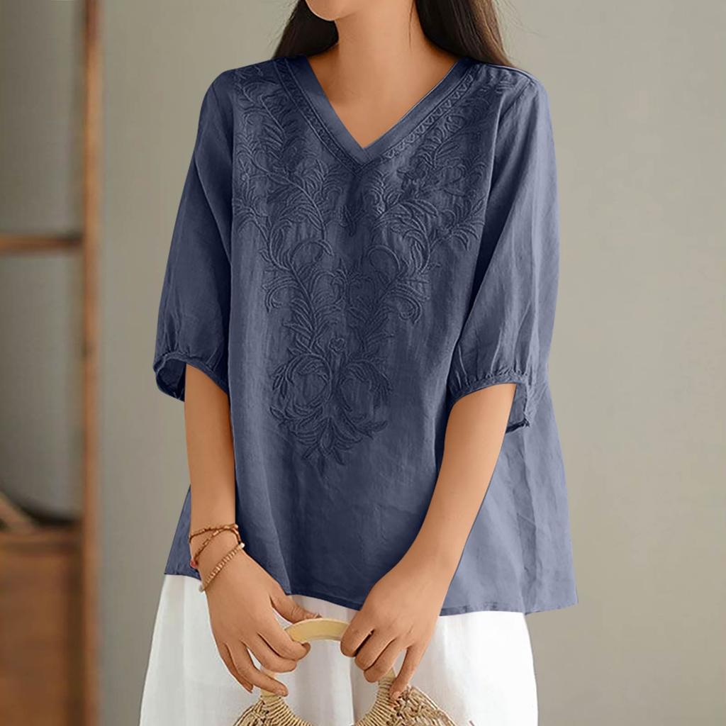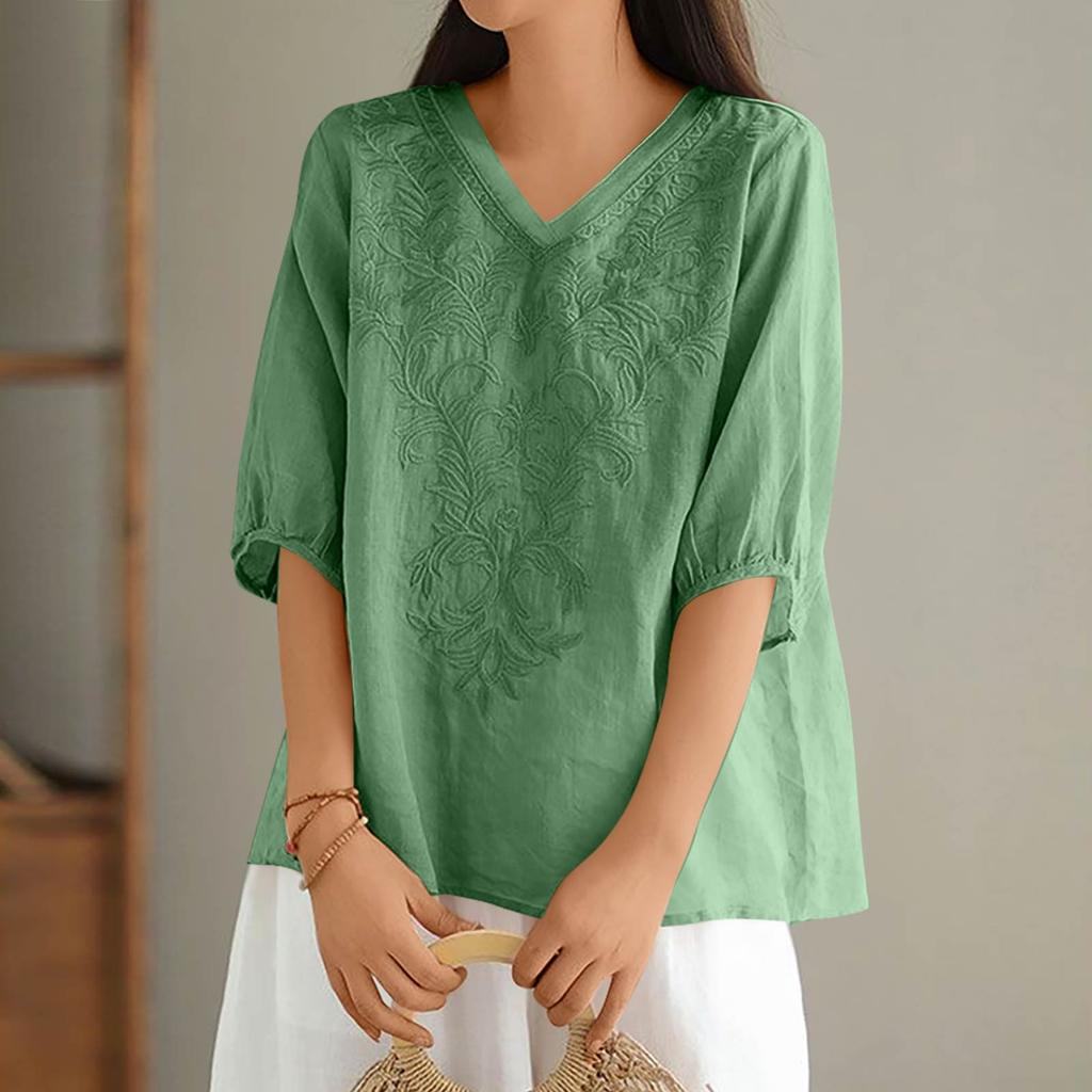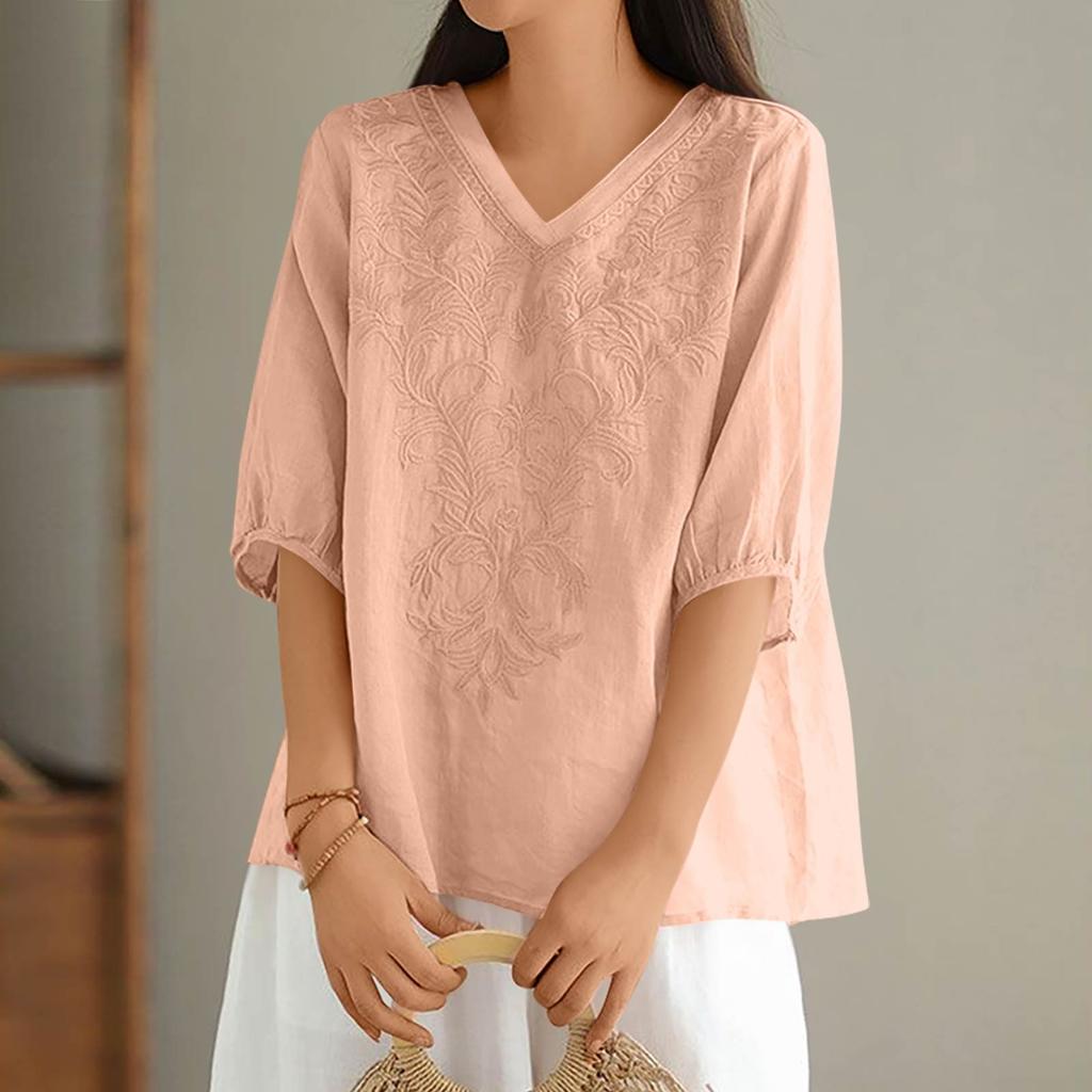 Женские однотонные винтажные свободные топы из тонкого хлопкового льна с V-образным вырезом, пуловеры
