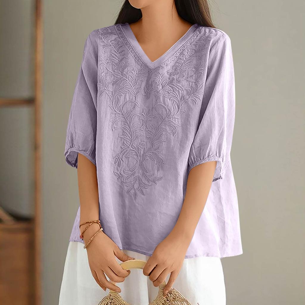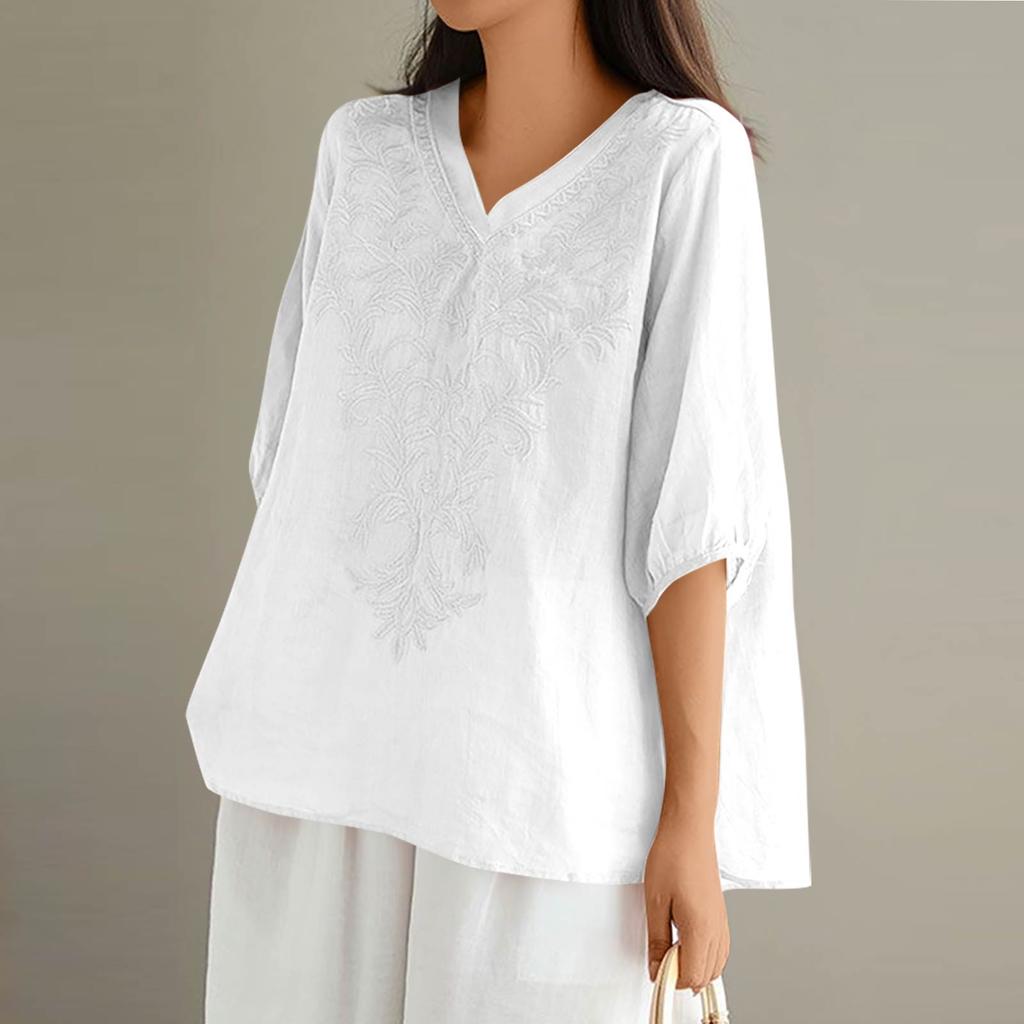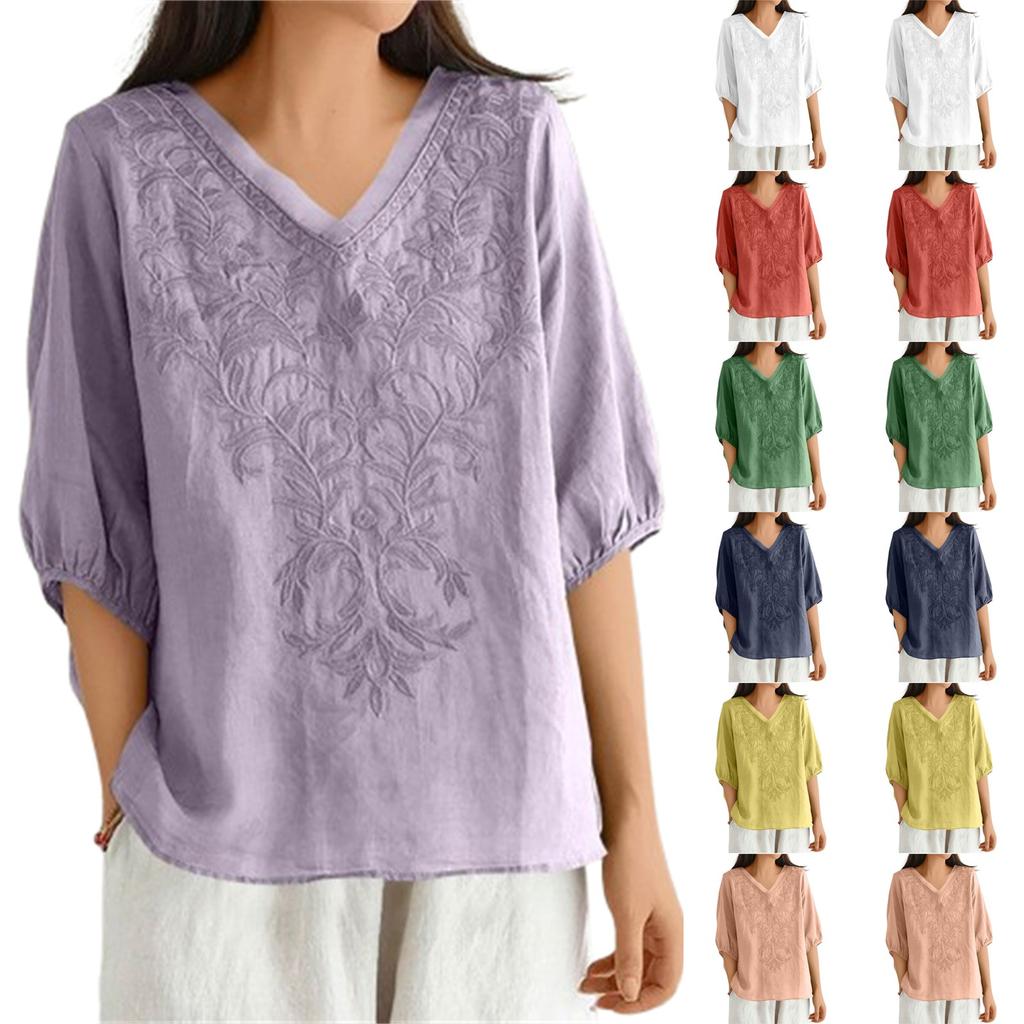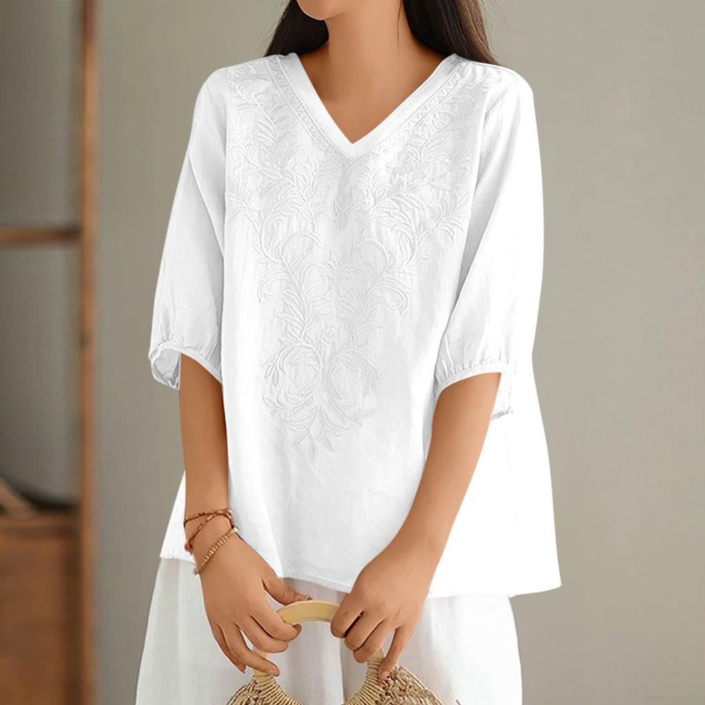 Женские однотонные винтажные свободные топы из тонкого хлопкового льна с V-образным вырезом, пуловеры