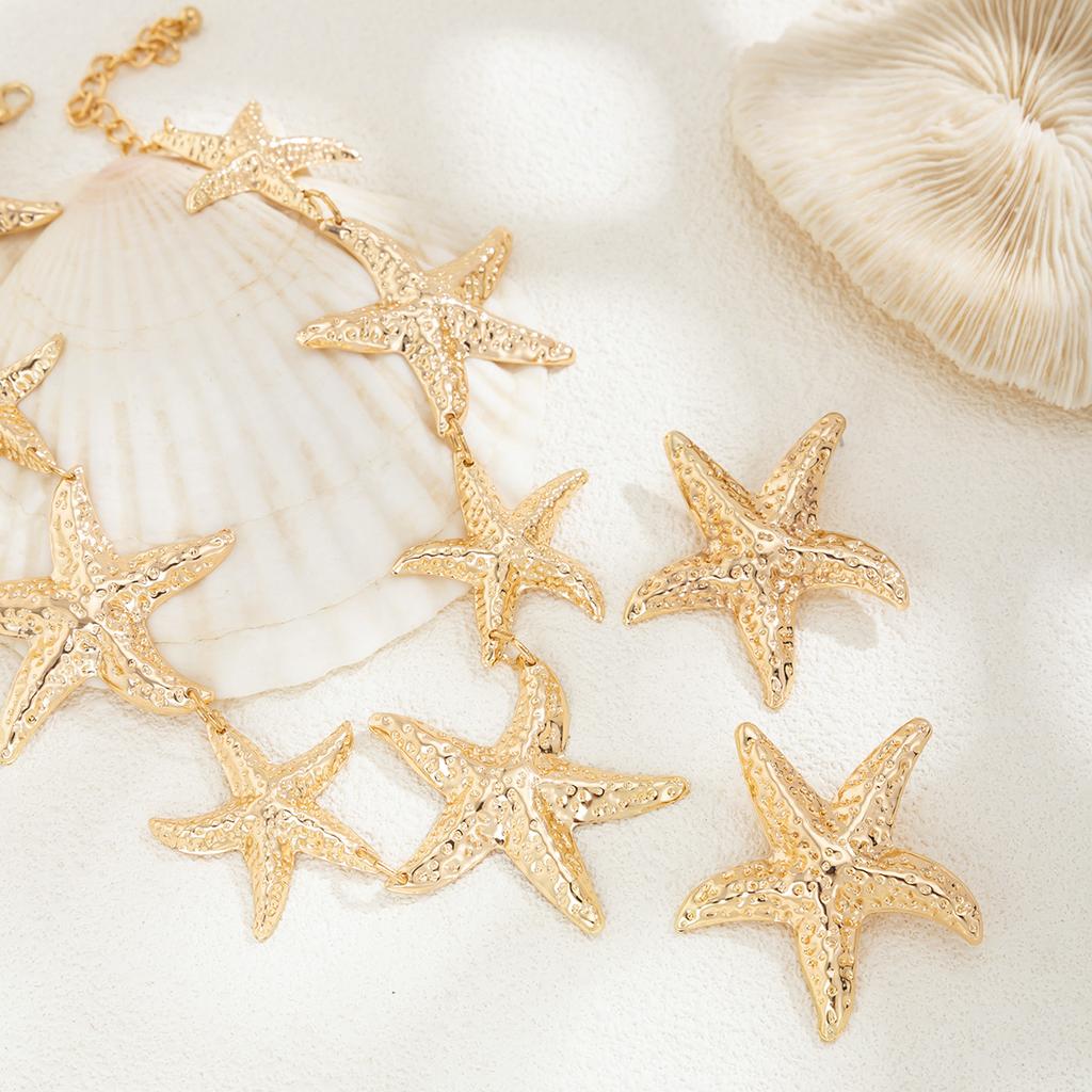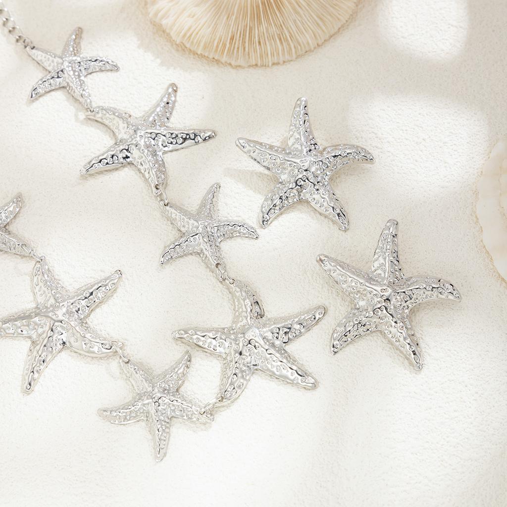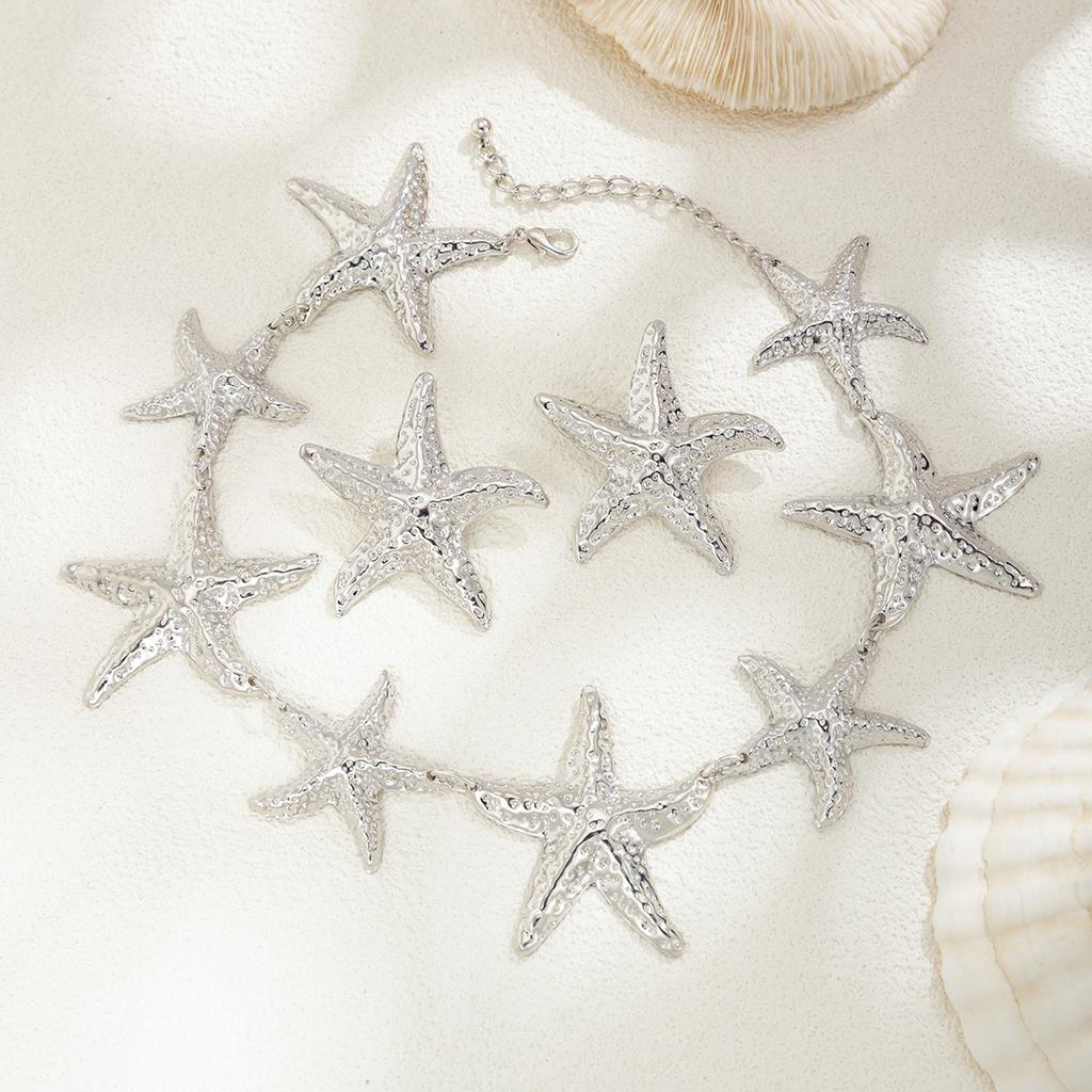 Модное металлическое ожерелье с подвеской в виде морской звезды, ручной работы, цепочка для ключицы с пятиконечной звездой, комплект