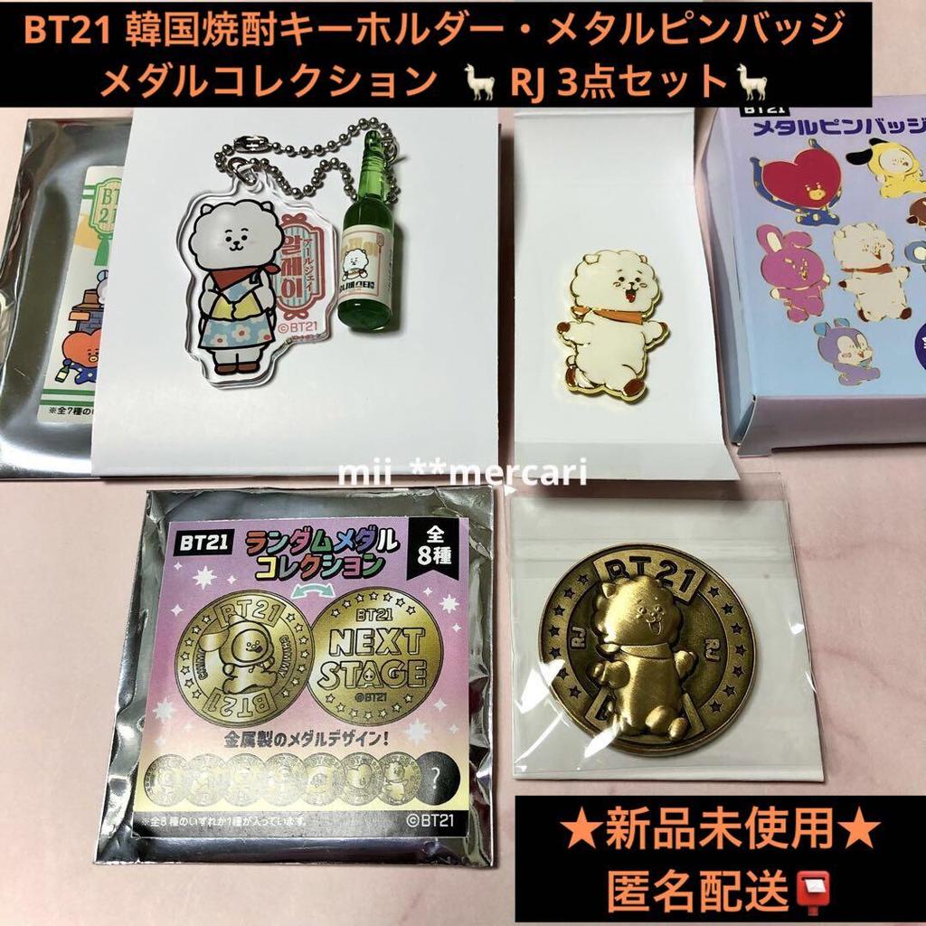 [USED] BT21 Korean Soju Keychain Metal Pin Badge Medal Collection RJ Set