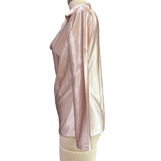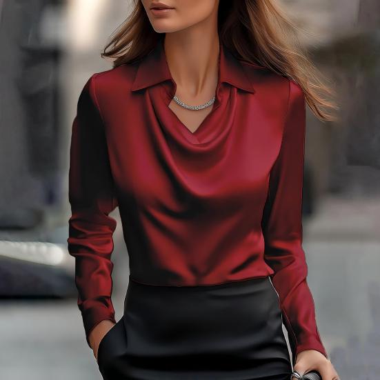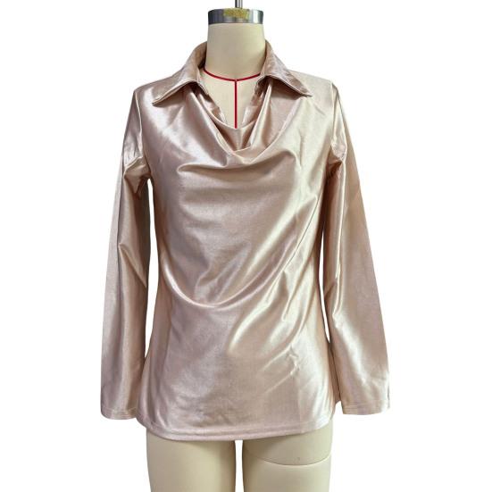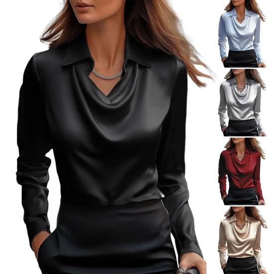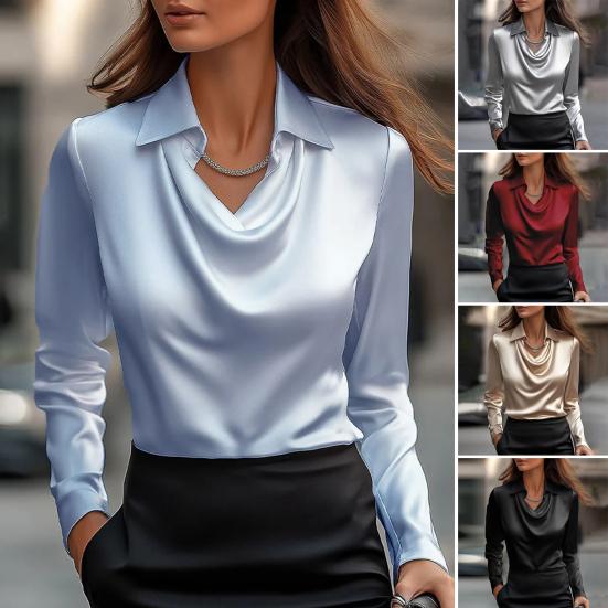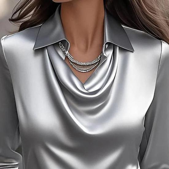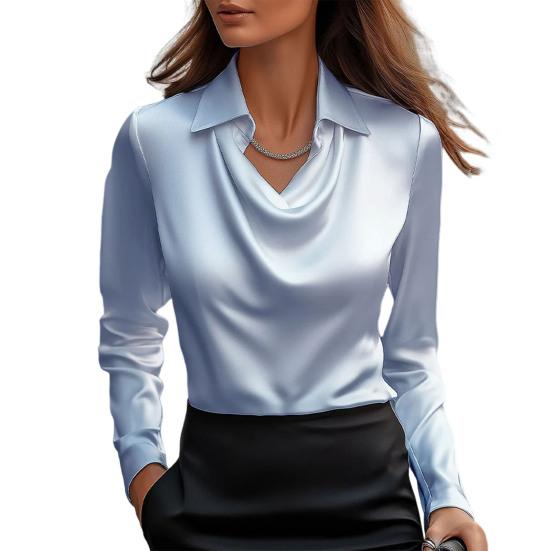 Элегантный дизайн: Эта рубашка с атласным воротником, длинными рукавами и возможностью закатывать рукава излучает изысканный, но универсальный стиль, подходящий для различных случаев.. Идеально для шикарного и модного образа, который легко переходит от повседневного к формальному.
