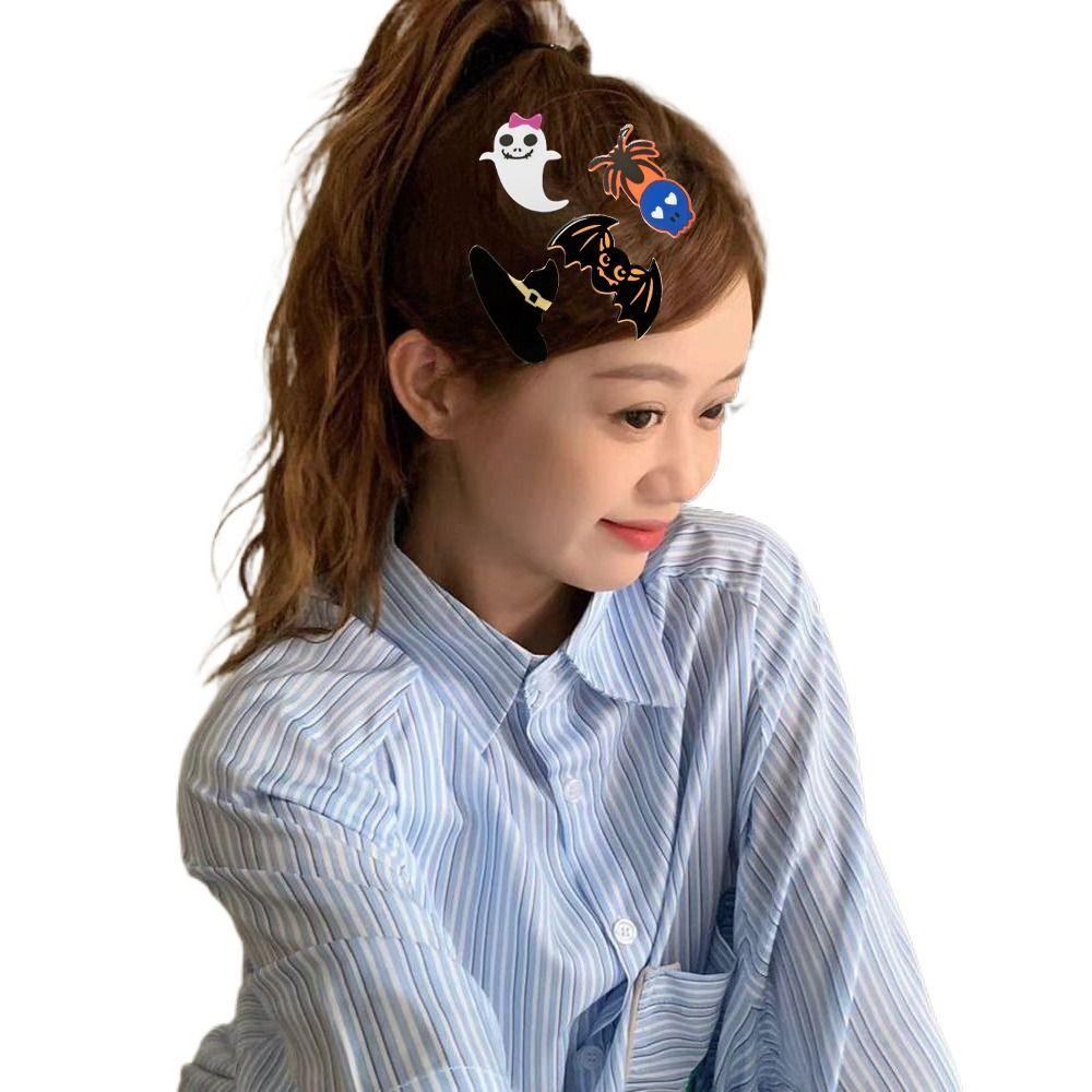 Хэллоуин Череп Призрак Заколка для волос Летучая мышь Череп Зажим-уточка Смешная заколка для волос с летучей мышью Женская/Детская