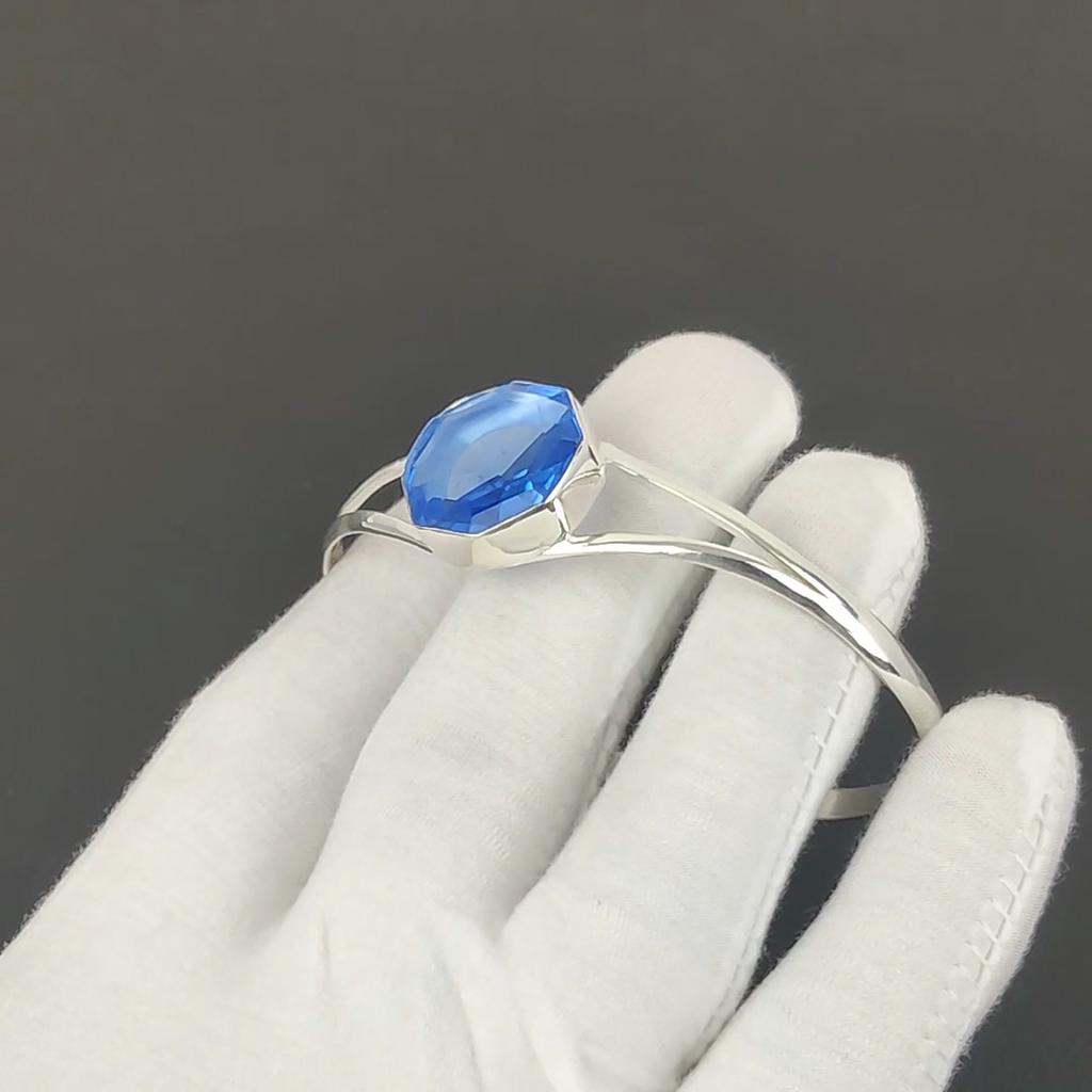 Танзанит Шестиугольный Драгоценный Камень Браслет-Манжета Ручной Работы из Серебра 925 пробы, Браслет с Танзанитом для Жены, Унисекс Браслет Женский Подарок