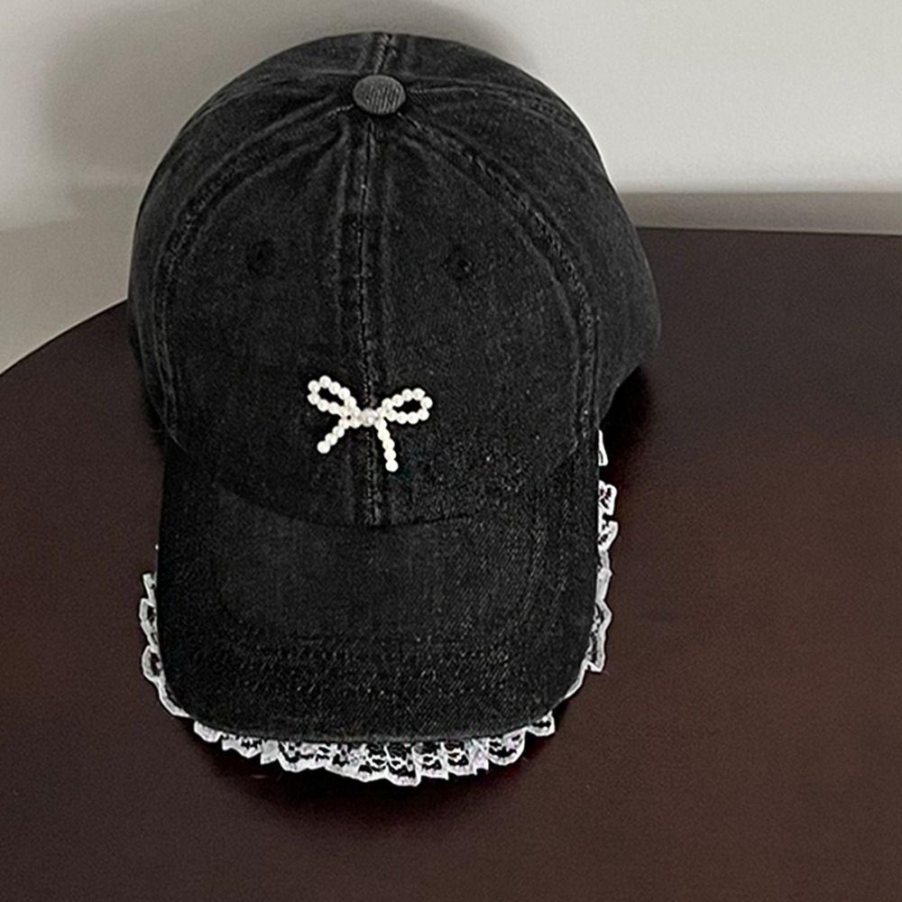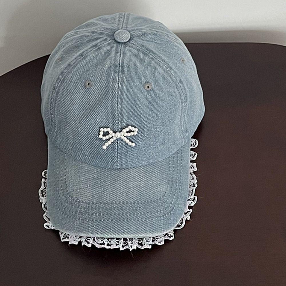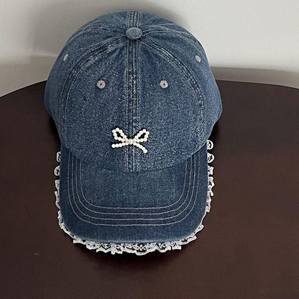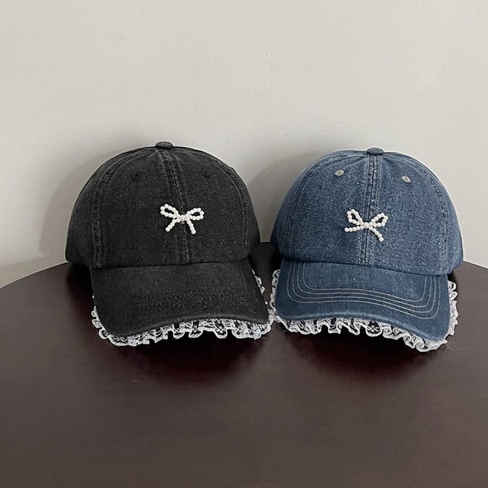 Кружевная бейсболка с бантом, кепка с козырьком с бантом, ретро джинсовая шляпа, женская