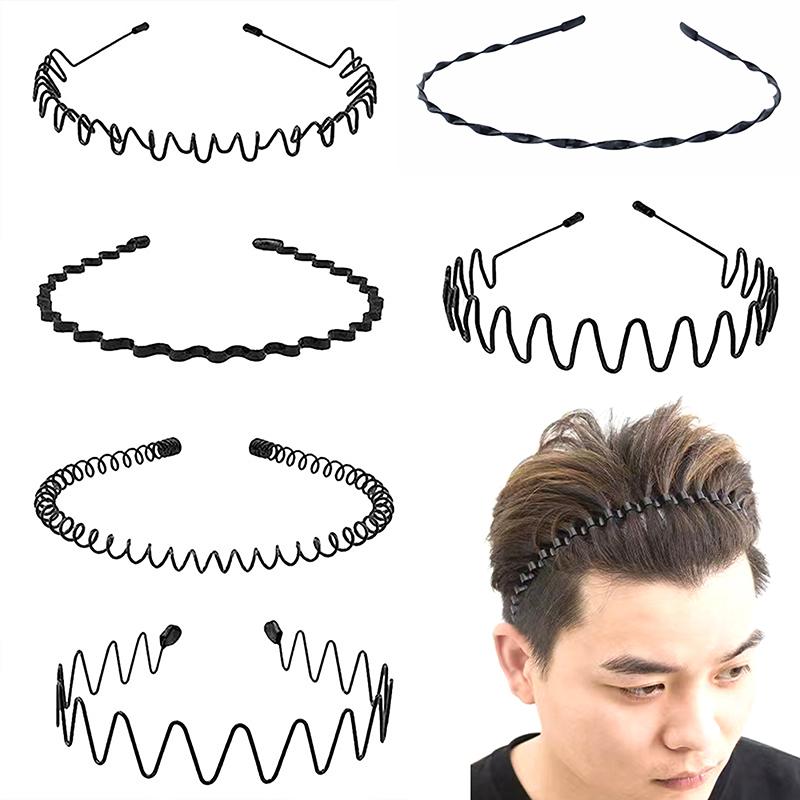 Нескользящая черная металлическая волнистая спортивная повязка для волос прочная мужская женская повязка для волос унисекс повседневная головная убор для взрослых подарок для мальчика