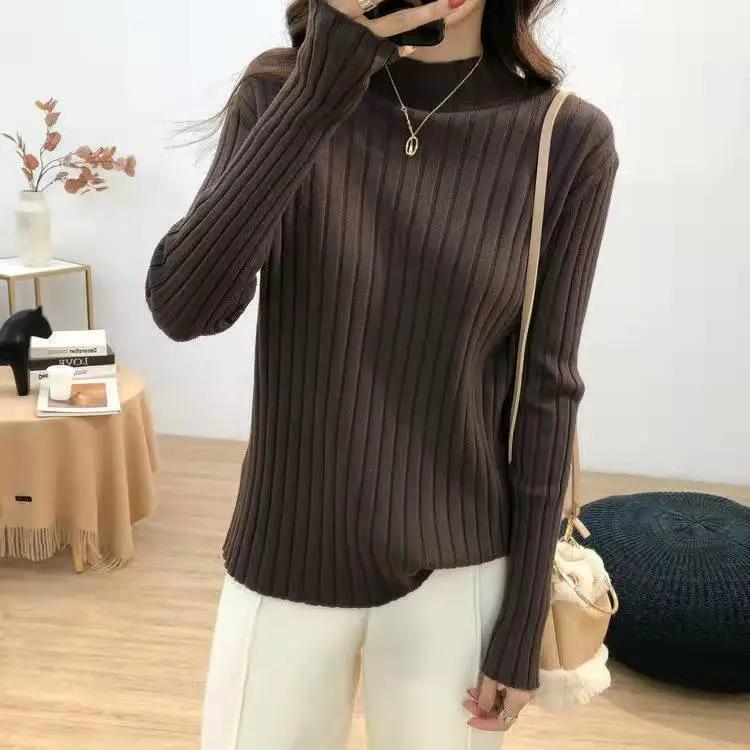 Осенне-зимний вязаный свитер с высоким воротником в рубчик, женская одежда, с длинным рукавом, облегающий базовый пуловер, женские свитера, однотонные топы