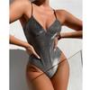 Блестящий цельный купальник, женский купальник, сексуальный купальный костюм с v-образным вырезом и высоким вырезом, женский боди-монокини, пляжный купальный костюм, купальный костюм