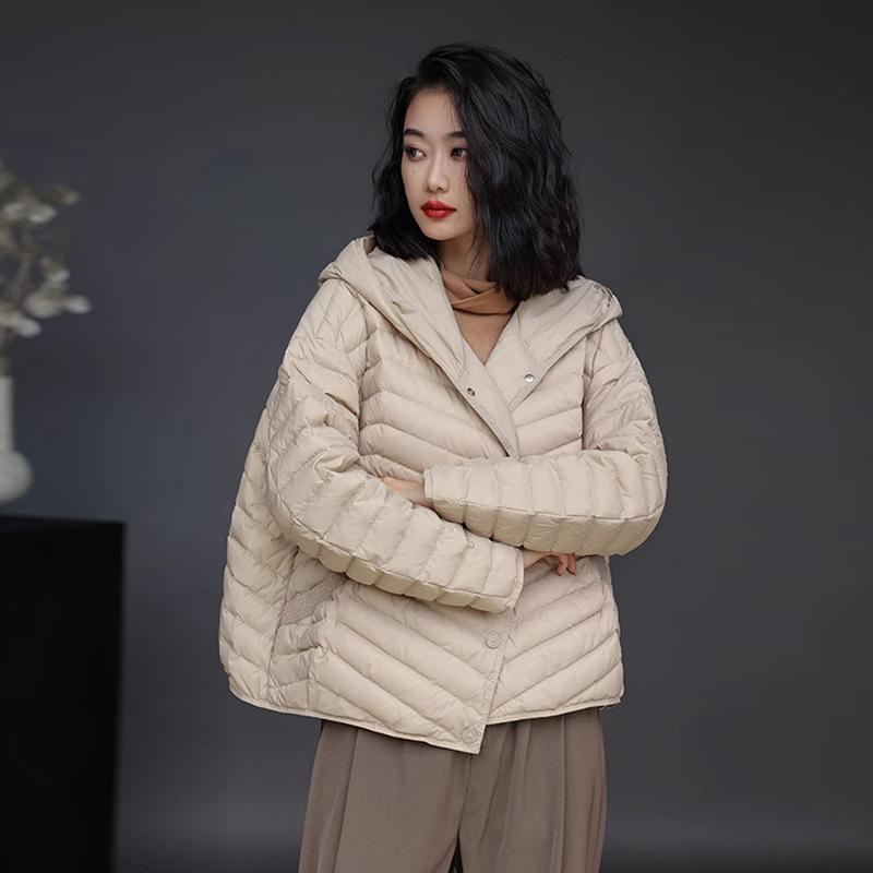 Женский пуховик из легкого пуха белой утки, модный зимний дизайн 2025 года, с капюшоном, рукав «летучая мышь», теплая куртка-мясо
