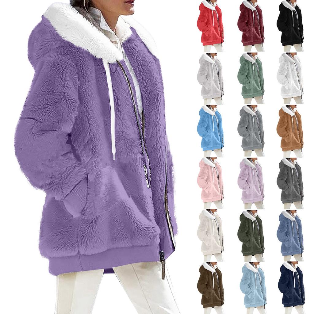 Женская повседневная однотонная свободная плюшевая куртка на молнии с капюшоном и карманами