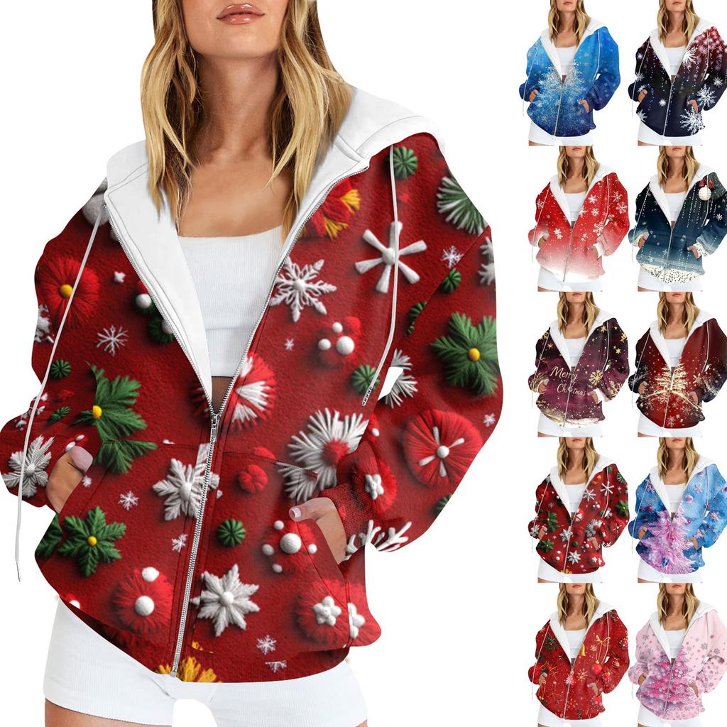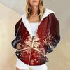Женская мода повседневная рождественская принтовая толстовка зимняя с длинным рукавом кардиган куртка с карманом на молнии толстовка с капюшоном куртка
