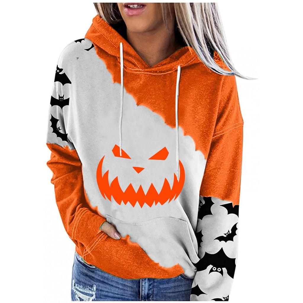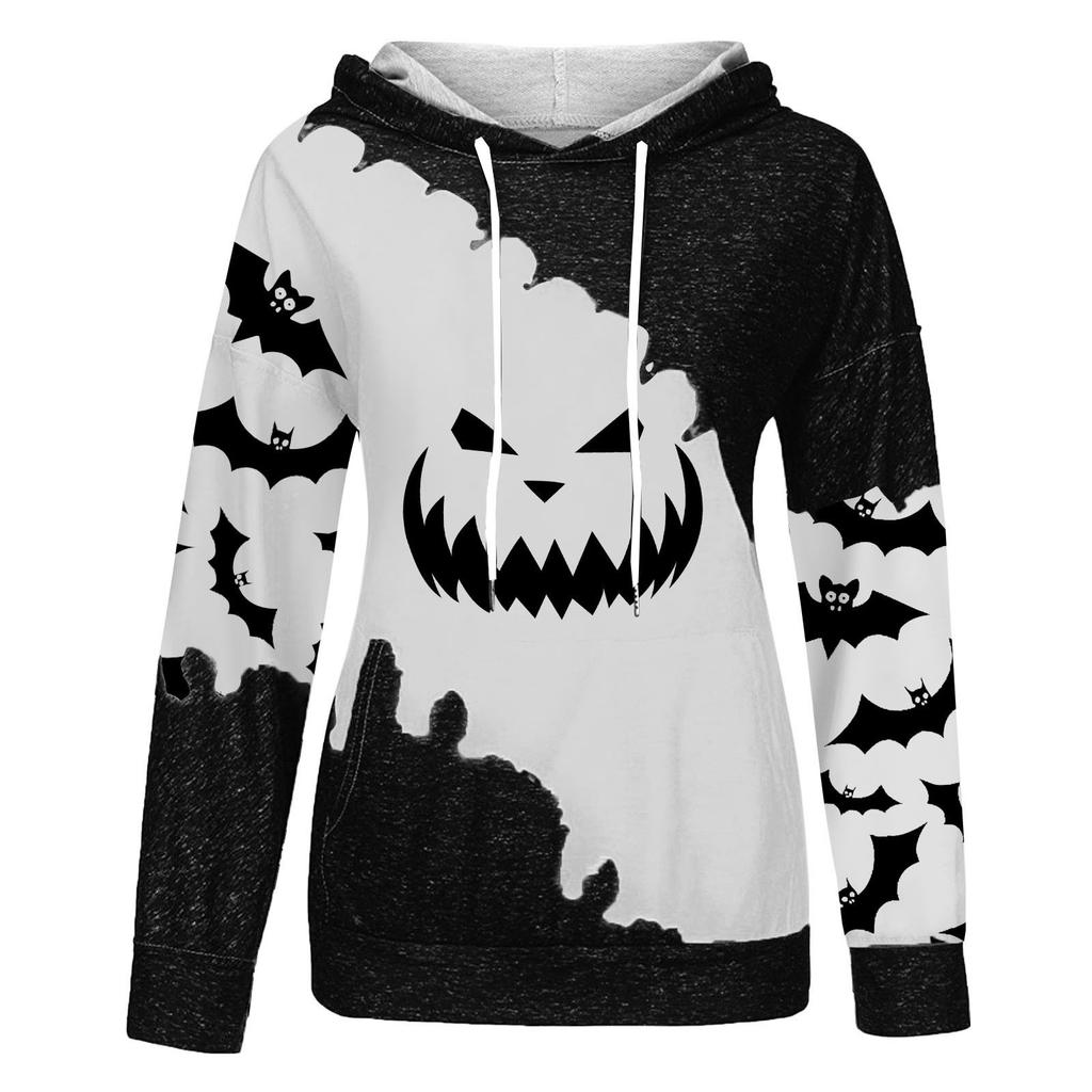 Женские повседневные модные пуловеры с длинными рукавами и принтом на Хэллоуин, толстовки с капюшоном