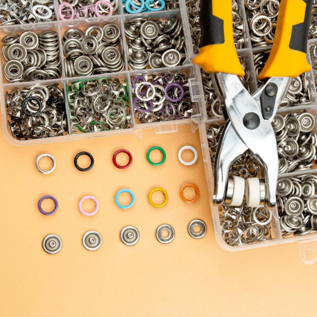 Этот набор включает 200 комплектов полых кнопок и инструмент-плоскогубцы, идеально подходящий для крупномасштабного производства или массового ремонта, обеспечивая эффективное выполнение ваших проектов.,
