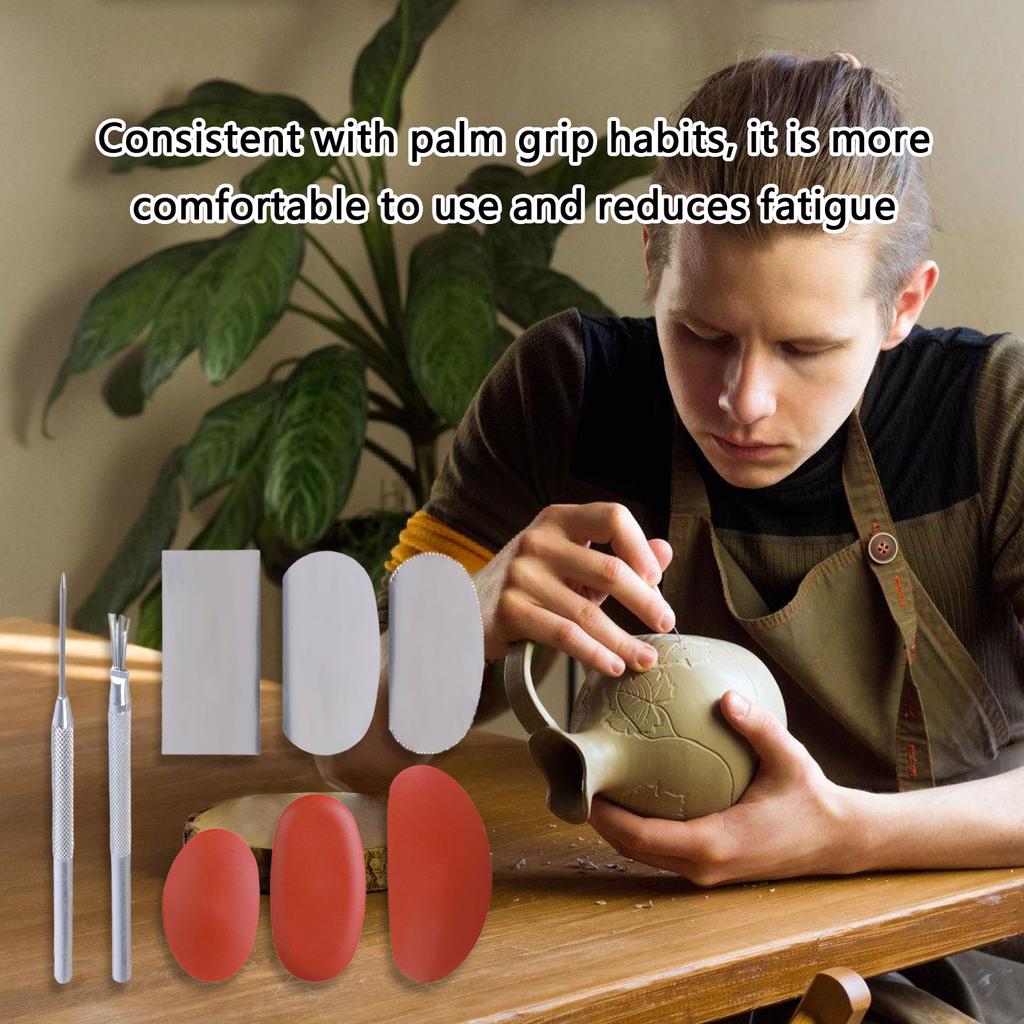 Изготовленные из высококачественного металла и силикона, эти инструменты долговечны, эргономичны и легко чистятся, обеспечивая долговечную работу для сложной работы с глиной.,