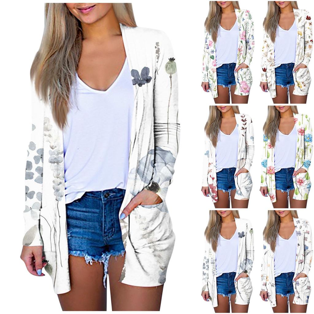 Женская модная свободная повседневная куртка-кардиган с карманом и цветочным принтом, топы с длинными рукавами — купить товар онлайн с бесплатной доставкой по всему миру!