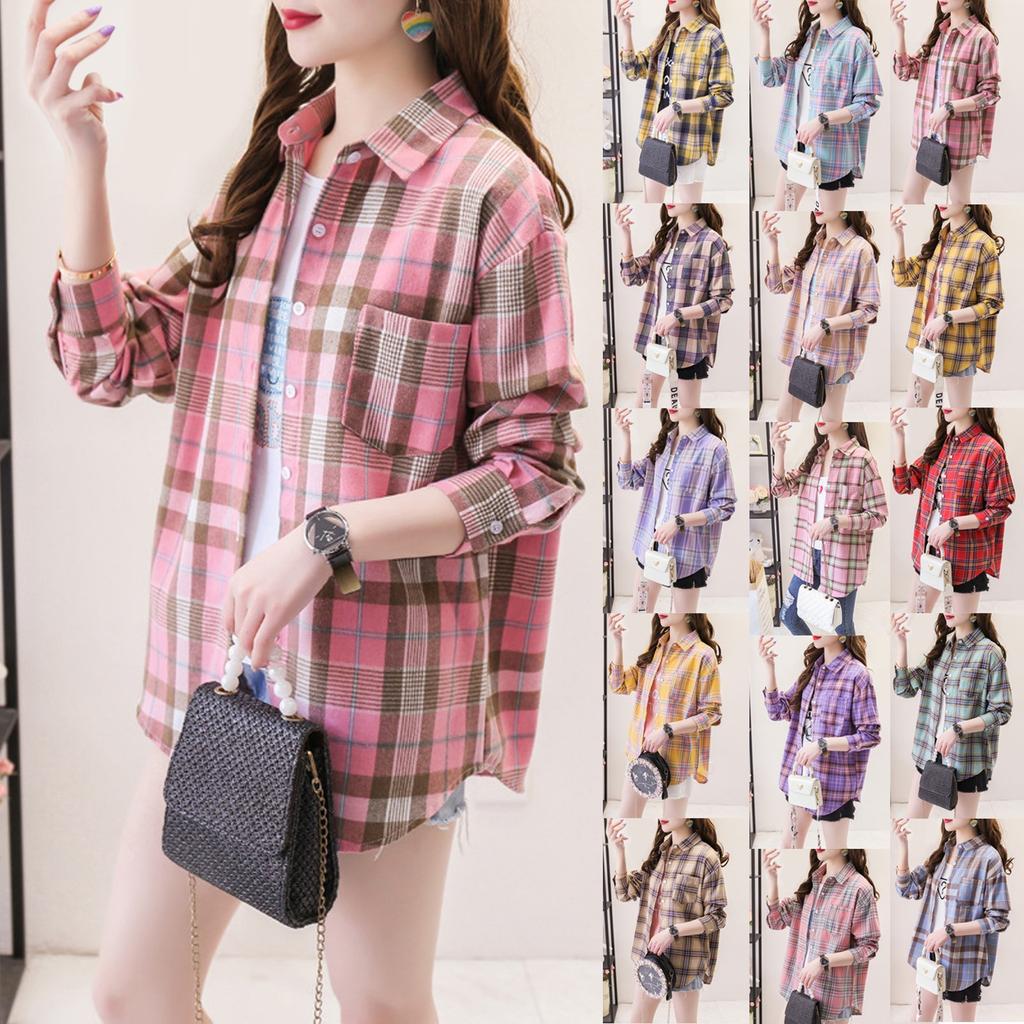 Женская модная повседневная универсальная клетчатая рубашка с длинными рукавами, студенческая рубашка, пальто, топ