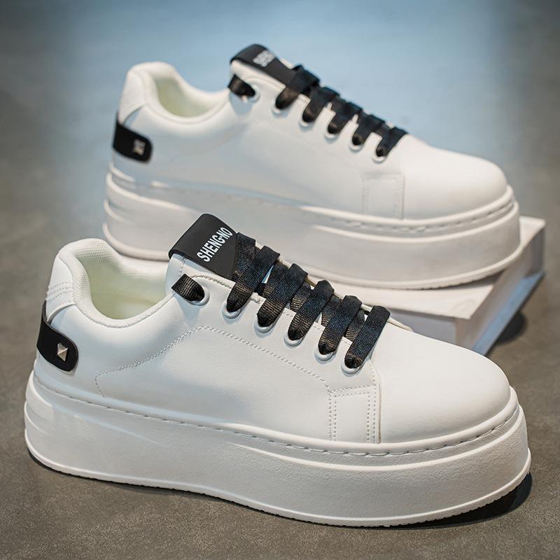 Весенняя мужская обувь Новая дышащая белая обувь Мужские модные универсальные кроссовки на толстой подошве с высоким подъемом Повседневная обувь для скейтборда Модная обувь