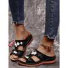 Летние женские сандалии на танкетке Премиум Открытый носок Ортопедические шлепанцы Винтажная Нескользящая кожа Повседневная Вышитая платформа Женская обувь