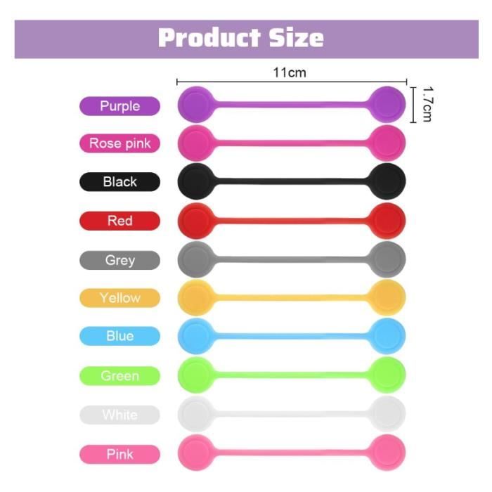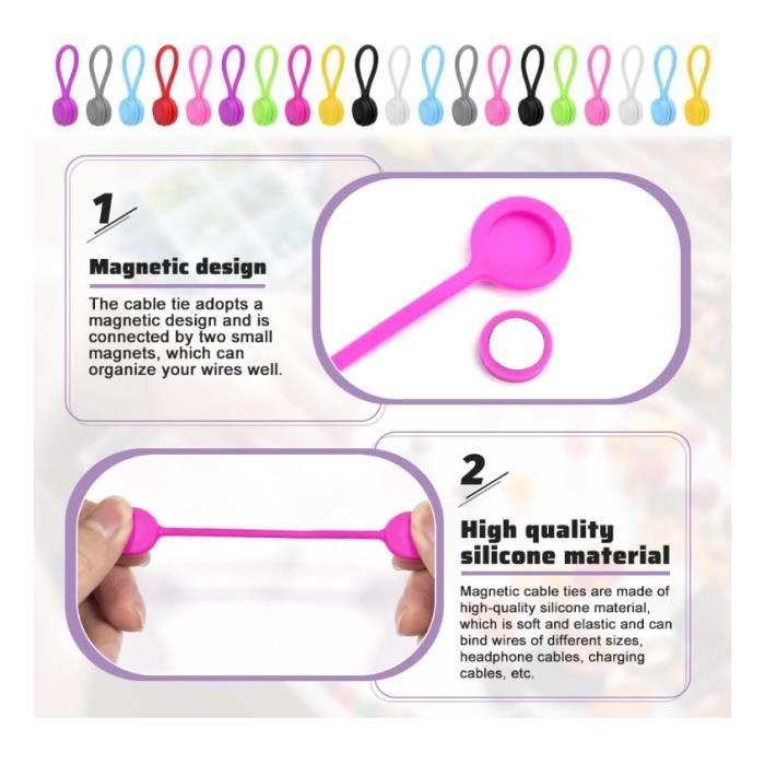 Магнитные кабельные стяжки - Силикон - 20 шт. - Черный - Многоразовые - 11 см