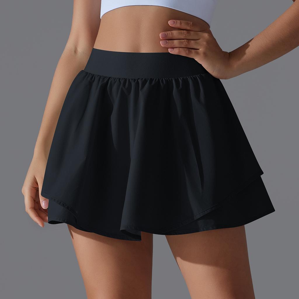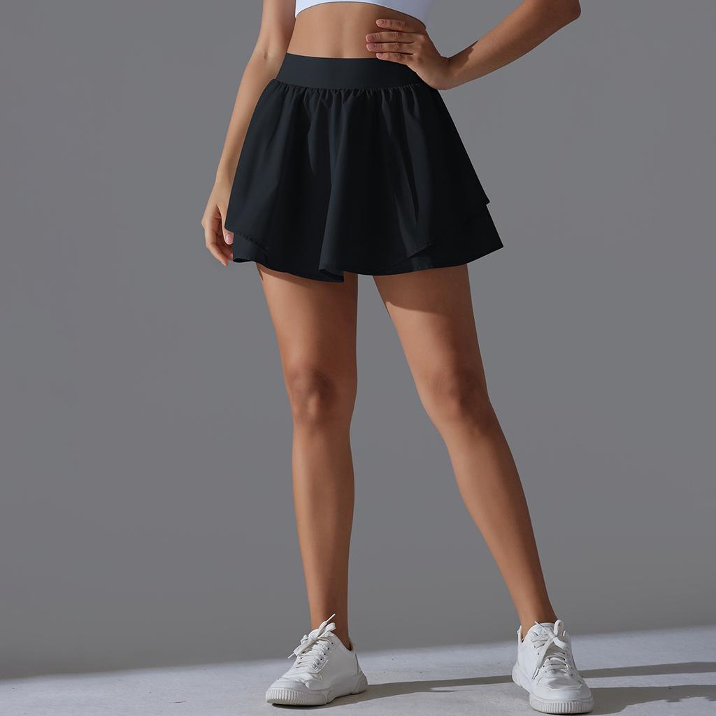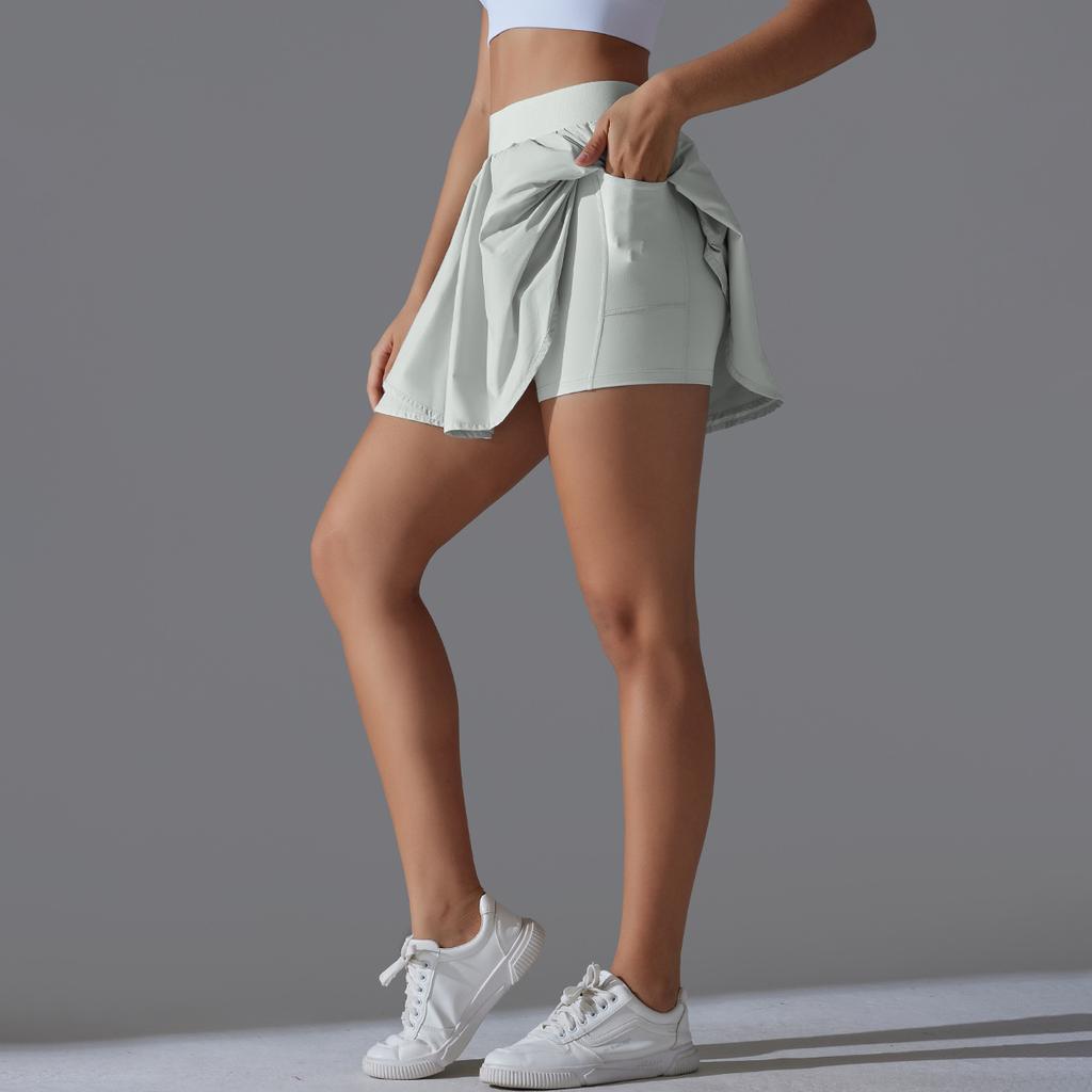Новая однотонная двухслойная юбка для тенниса с карманом, сексуальная облегающая, высокая эластичность, спортивные шорты для бега, фитнеса, йоги для женщин
