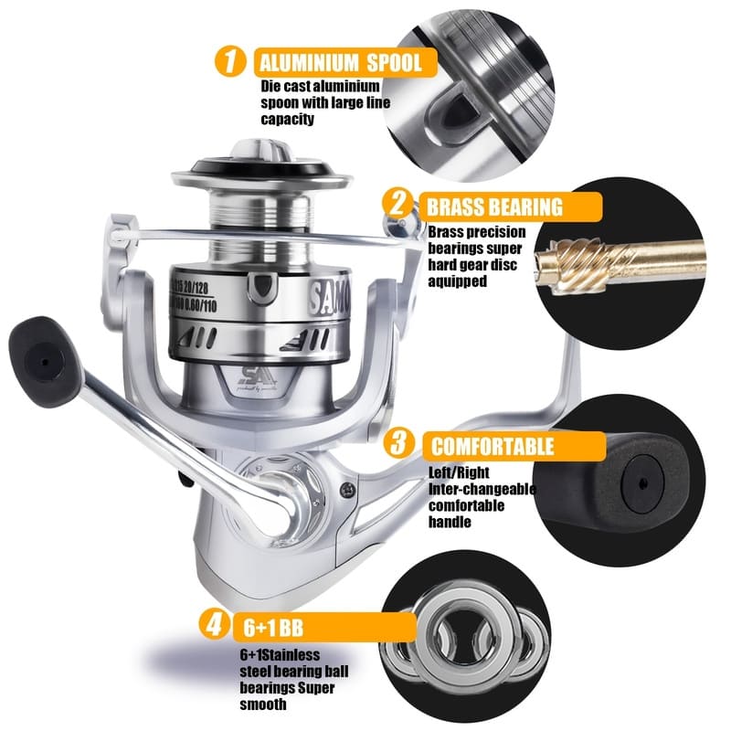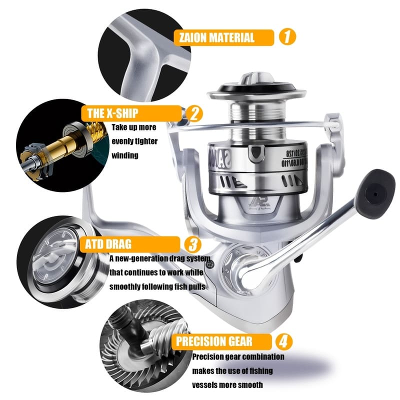 Высококачественная спиннинговая рыболовная катушка серии 1000-7000 Высокопроизводительное рыболовное оборудование, совместимое с соленой и пресной водой Большая сила сброса