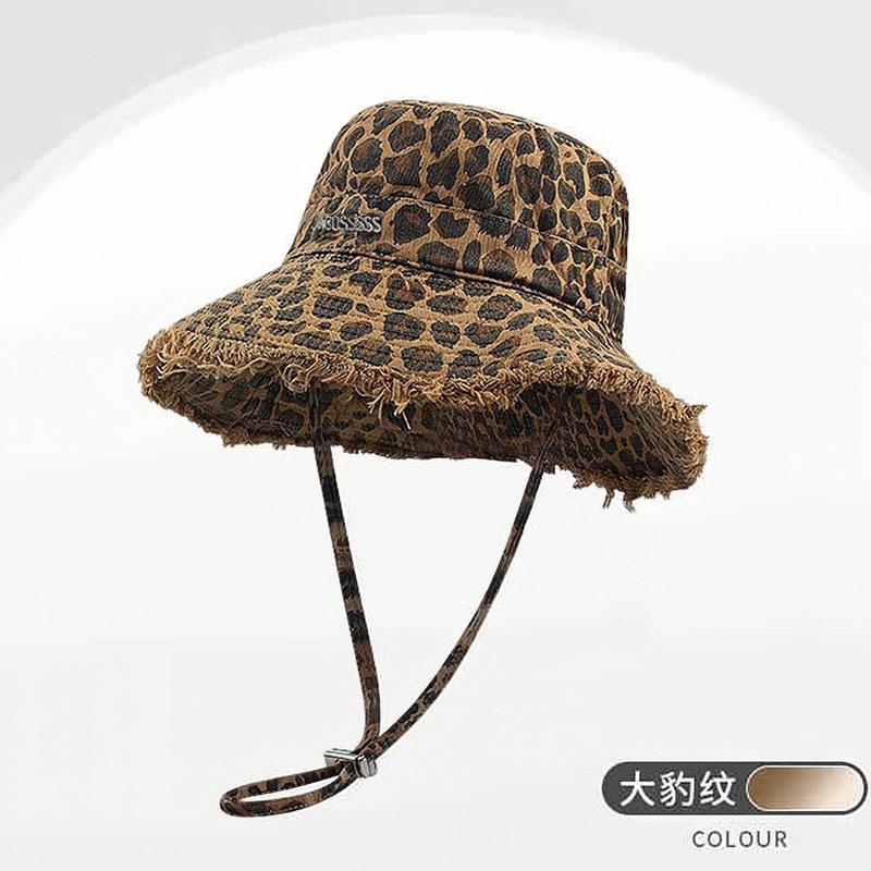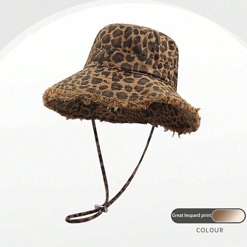 Леопардовый принт горячая девушка шляпа-ведро с необработанным краем модная универсальная уличная складная шляпа от солнца